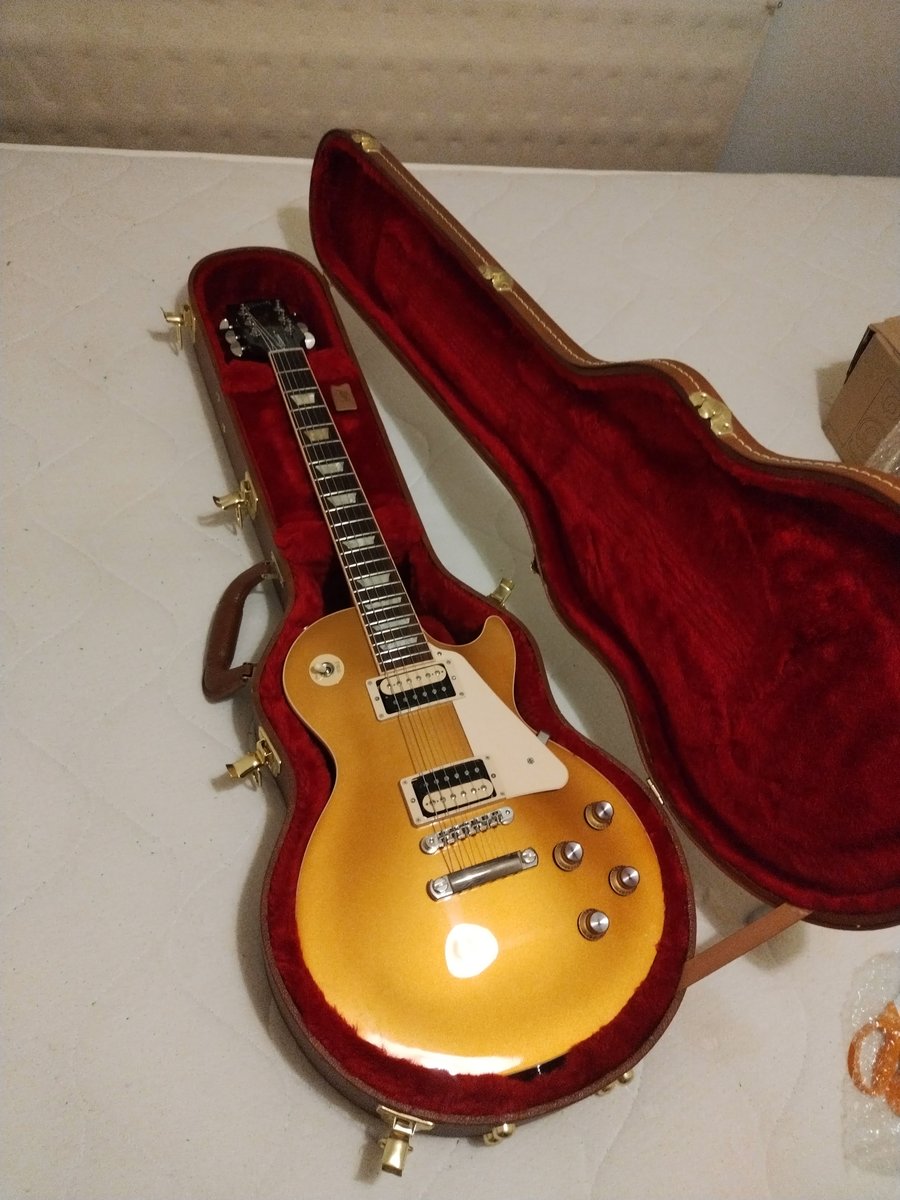 | Myyntiin uudenveroinen Gibson les paul classic. Jos Slim taper kaula yhdistettynä goldtoppiin kiinnostaa, niin tästä oiva kitara sinulle! Kitara moitteettomassa kunnossa Body Series: Les Paul Classic Body Material: Mahogany Top Material: Maple Weight Relief: 9-Hole Construction: Set Neck Finish: Gold Top Neck & Fingerboard Neck: Mahogany Scale Length: 24.75" Fingerboard Material: Rosewood Neck Profile: Slim Taper Binding: Traditional Rolled Inlays: Acrylic Trapezoids Nut Type: Tektoid Nut Width: 1.69" Electronics & Hardware Bridge Pickup: Burstbucker 61T (Zebra) Neck Pickup: Burstbucker 61R (Zebra) Pickguard: Cream Controls: 2x Push/Pull Coil Tap Volume, 2x Push/Pull Tone (Pure Bypass/Phase), Toggle Switch Tuners: Grover Rotomatics W/Kidney Buttons Bridge: ABR-1 Tune-O-Matic Case: Gibson Hardshell Vaihdossa kiinnostaisi hyvä stratocaster esim fenderin AV 61. Ruusupuuotelauta ja fiesta red tai sunburst värit plussaa Hinta: 1700 € | |