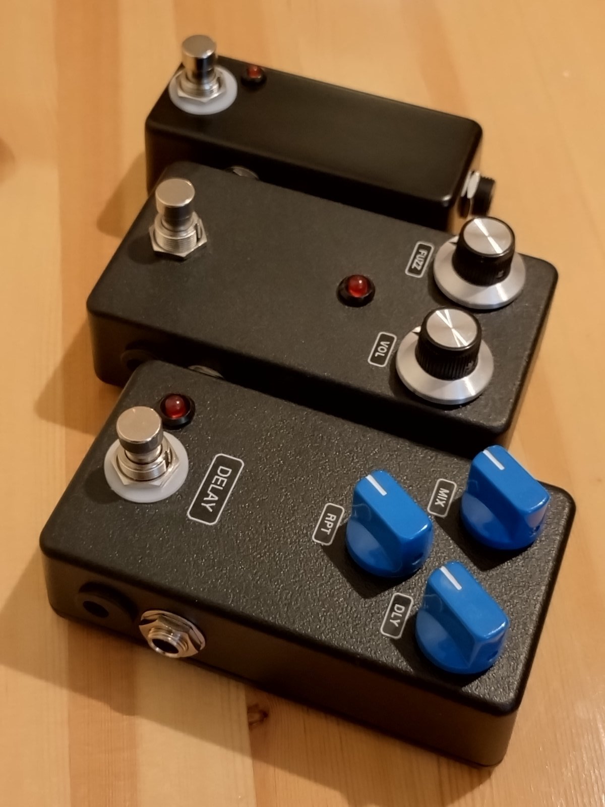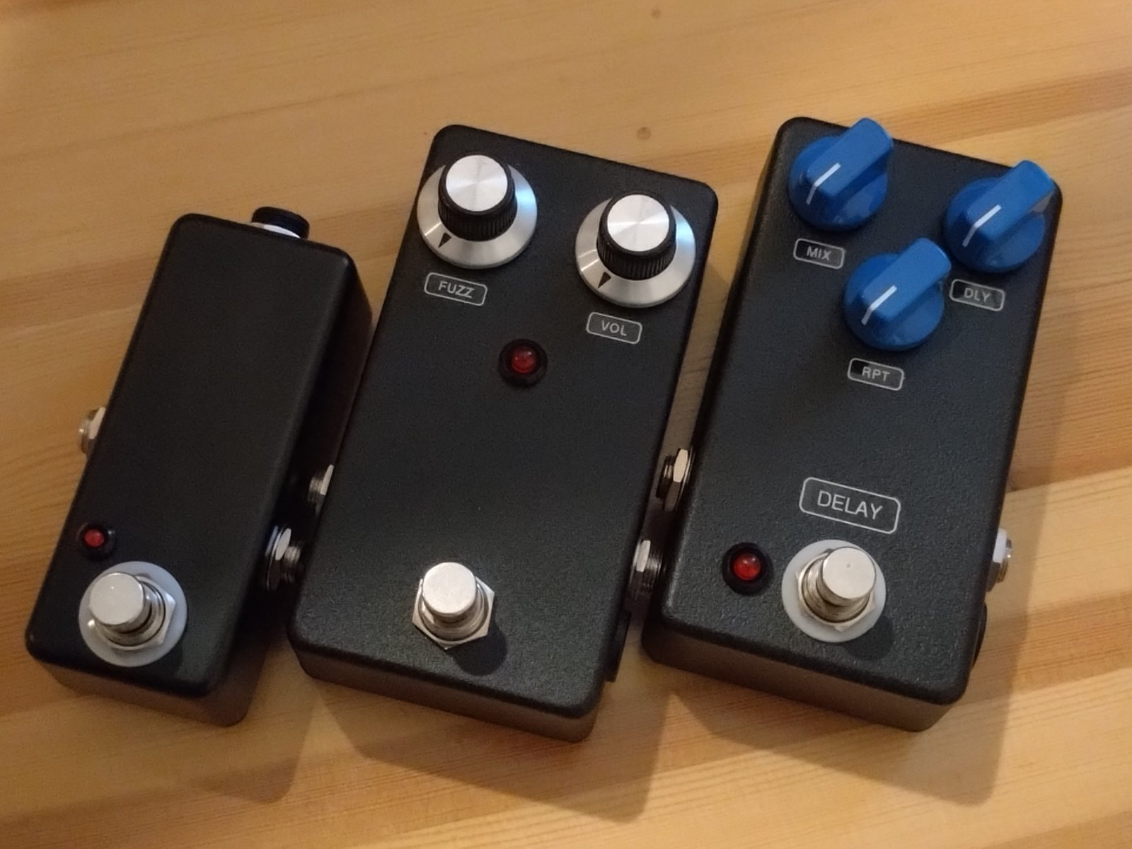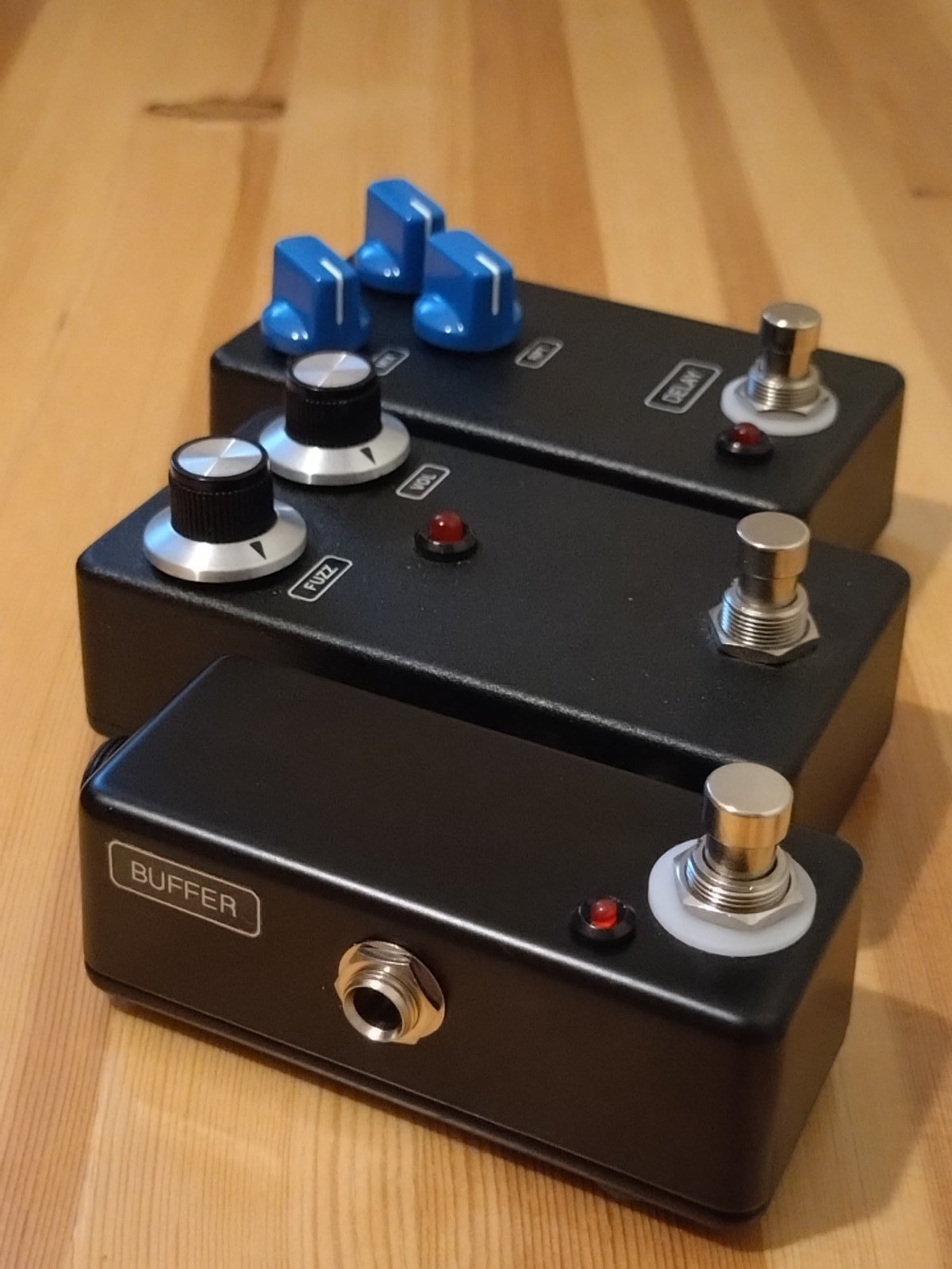 | Buffer -Erittäinkin korkealaatuinen IC-pohjainen "standalone"-bufferi. Erillisen bufferipedaalin etu myös vapaa sijoittelu mihin tahansa kohtaan pedaaliketjua. Yleensä toimii parhaiten ensimmäisenä pedaalina tai fuzzien ja wahin jälkeen seuraavana. Pohjana tässä JHS Little Black buffer, jota parannettu ja lisätty myös on/off kytkin. -50 eur Fuzz Face -Valikoidut germanium-transistorit. Toimii alkuperäisestä poiketen normaalilla miinus keskellä 9V-virtalähteellä kuten muutkin nykypedaalit. -120 eur Delay -Lajissaan paras nauhakaiku-soundinen delay eli Mad Professor Deep Blue Delay-kytkentä tässä. -100 eur Ostotilanteessa laita vaan toimitustiedot pikaviestillä tai sähköpostilla, niin saat vastausviestinä maksutiedot (tilisiirto tai Mobilepay) ja pedaali lähtee näppärästi Postiin ja on yleensä jo seuraavaksi päiväksi perillä. Hinta: 100 € | |