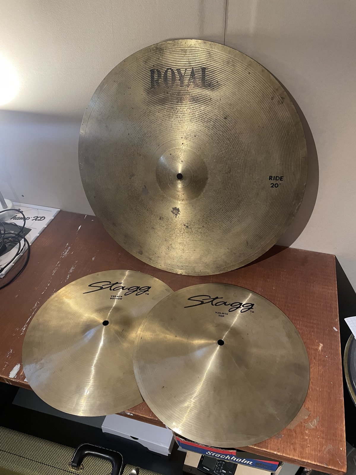| Halvat ja ok-kuntoiset peruspellit kimpassa eteenpäin. Staggin 14" haitsut (paper thin) ja Royalin 20" ride (medium). Nouto/lähetys. Hinta: 80 € | |