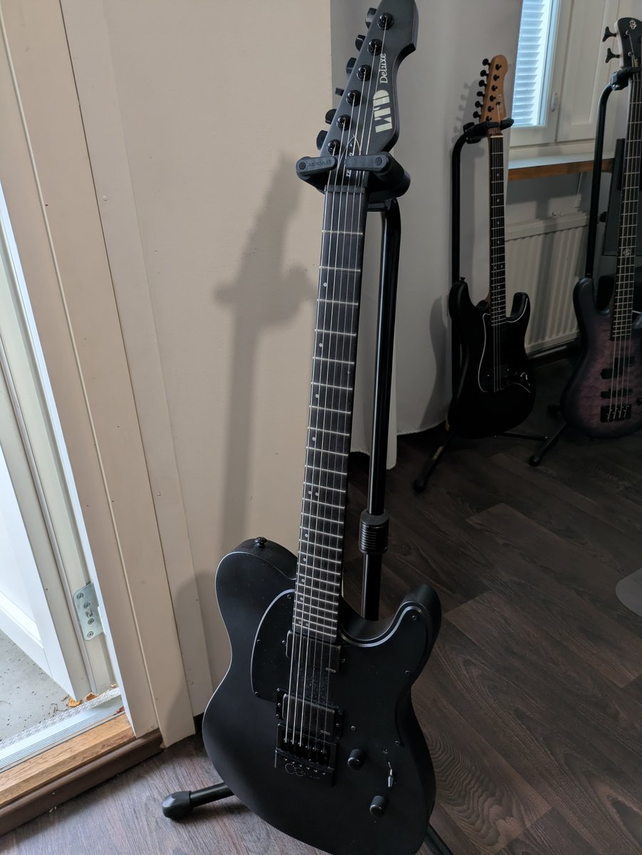 | Myydään heräteostos, jolle ei löytynytkään käyttöä. Varsin mainio Koreassa valmistettu telemallinen ESP LTD. Varustettu Evertunella joka tekee sen minkä lupaakin eli pitää vireen kohdillaan. Säätämällä saa myös bendit toimimaan niin kuin muilla talloilla. Mikkeinä EMG:n 81 ja 60TW-R jonka voi puolittaa push-pull kytkimellä. Body mahonkia ja otelauta eebeniä. LTD:n lukkovirittimet. Mattamusta mustalla plektrasuojalla. Soittotunteja vain pari eli oikein hyvässä kunnossa. Ei ole missä lähettää, joten vain nouto Tampereen Peltolammilta. Ei vaihtoja tällä kertaa. Hinta: 800 € | |