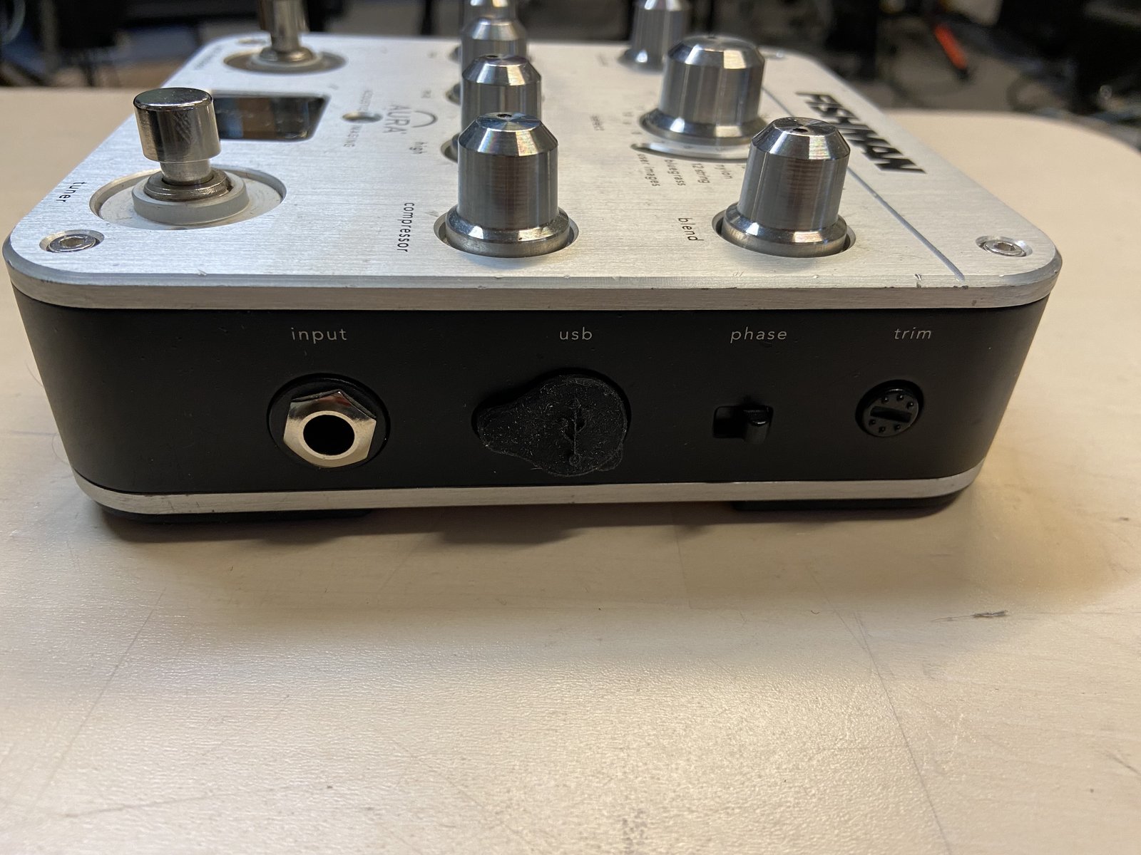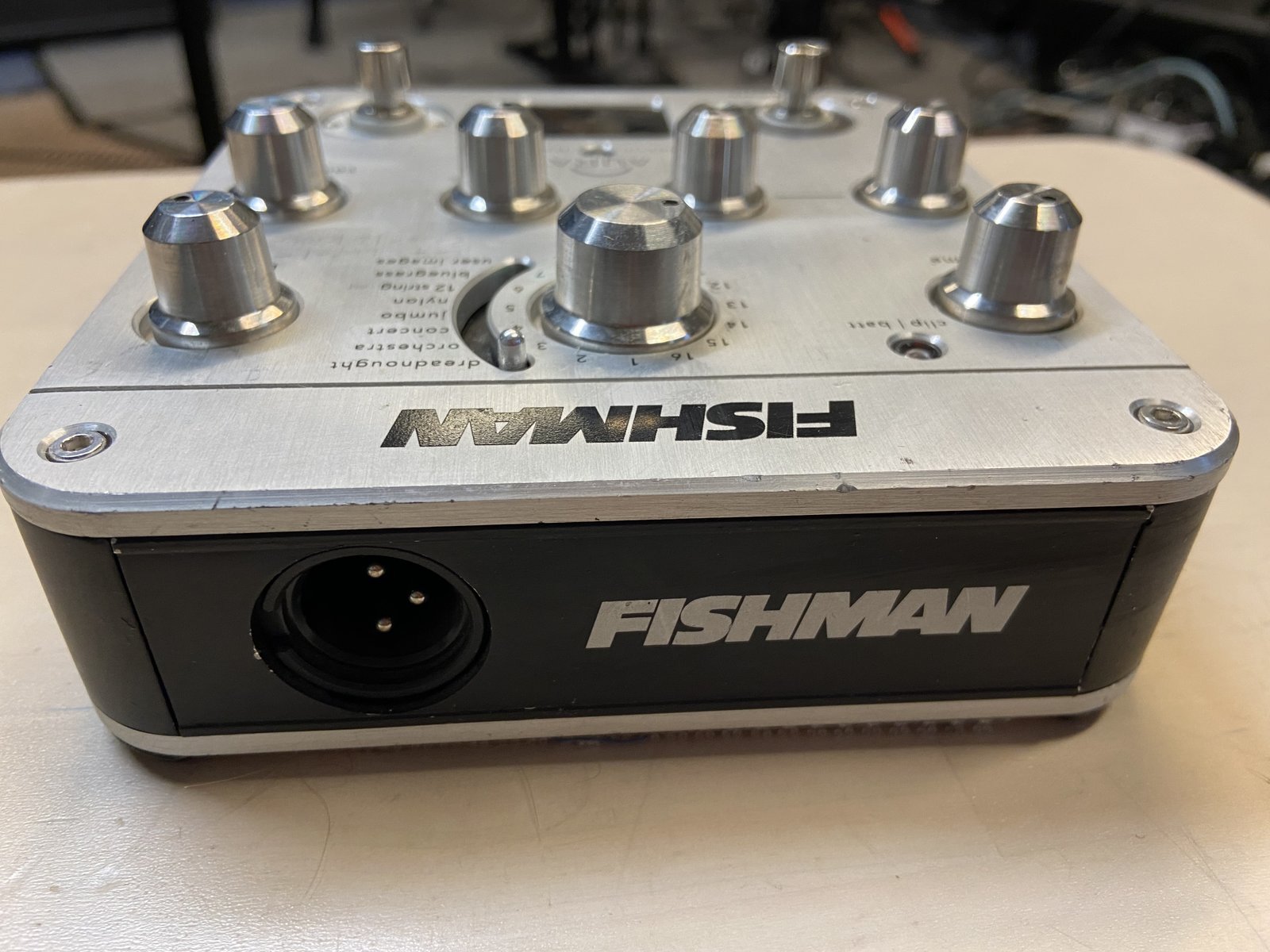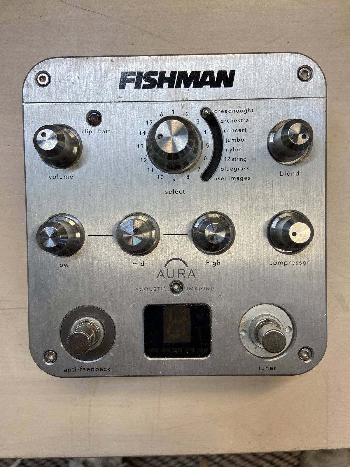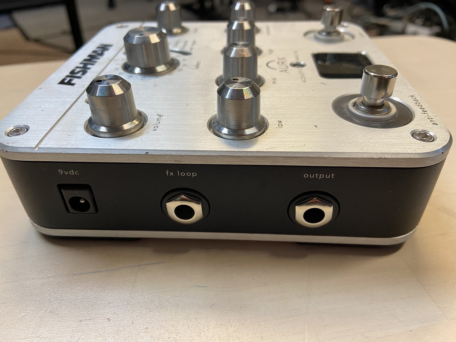 | Päivitän akustisten soittimien pedaalilautaa ja myyntiin lähtee Fishman Aura Spectrum akustisen kitaran studiomikrofoneilla äänitettyä ääntä ir-mallintava etuvahvistin ja Di EQ:lla, kompressorilla, efektiloopilla ja anti-feedback toiminnolla. Monipuolinen käyttää sekä äänittäessä että livenä. Kevyitä käytön jälkiä, kuten kuvissa näkyy, ja "tune"-napin ympäriltä puuttuu muovinen koristerengas. Muuten siistissä kunnossa ja toimii moitteettomasti. Pohjassa Duolock-tarra. Fishmanin verkkosivulta voi ladata ja vaihtaa ir-mallinnettuja studiomikrofoneja ja akustisia kitaramalleja. Nouto Helsingissä Keskustan tai Lauttasaaren suunnalta tai toimitus postipakettina ostajan kustannuksella. Hinta: 345 € | |