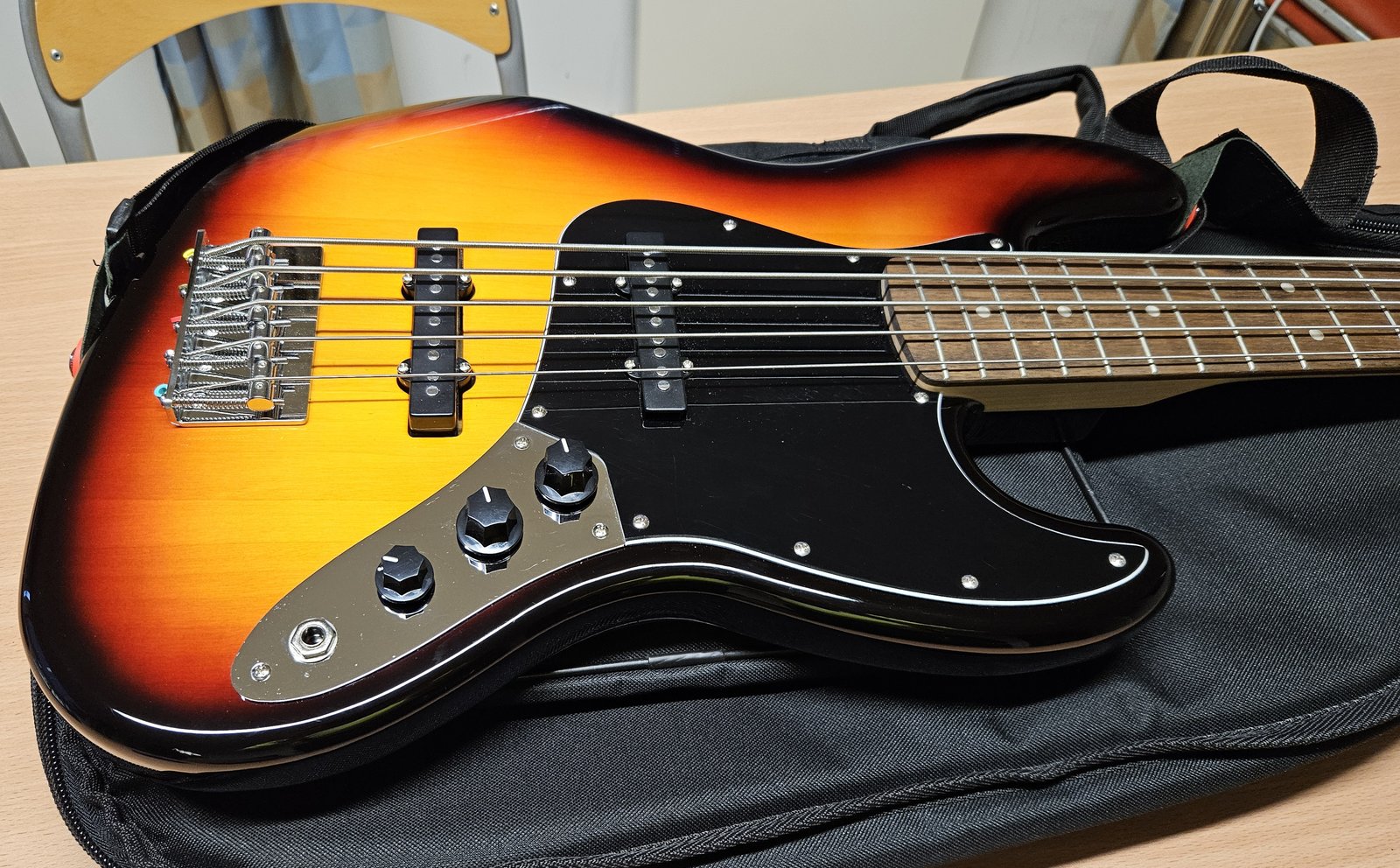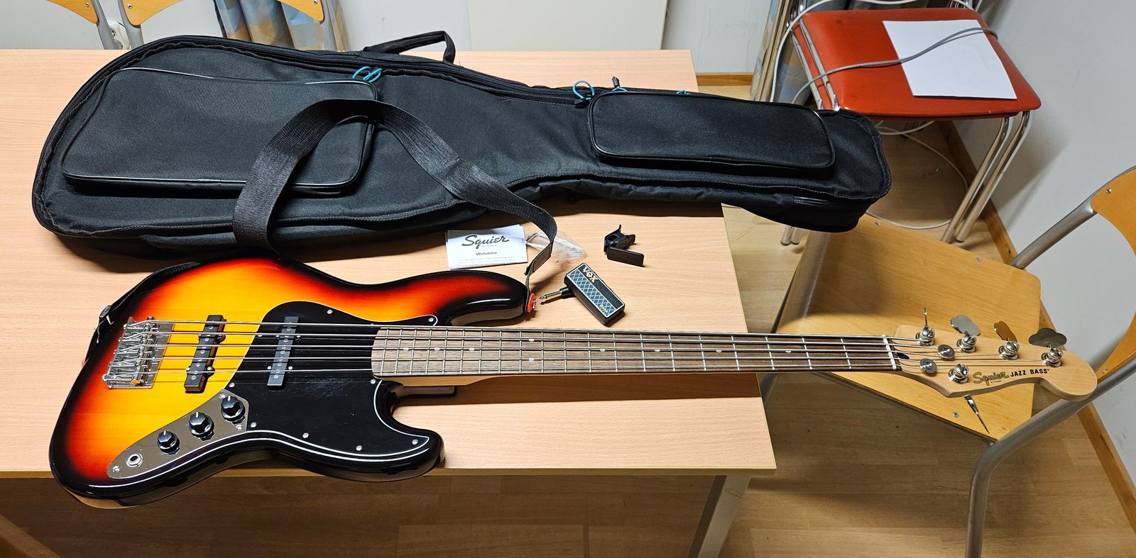 | 5-kuelinen squier affinity jazz bass V pienillä käytönjäljillä kaupan, kun presari himottais. Mukaan löytyy reppu, hihna, fenderin strap blockit, kuulokevahvistin ja klipsiviritin. Elikkä kuulokkeita vaille täydellinen harjoituspaketti. Faktoja: VM-11/2024 (ostettu tänävuonna). BEADG- vireessä. Poppeli bodi. Vaahtera kaula. Laurel otelauta. 47.6 mm satula ja 19mm kieliväli tallassa. 34"/864mm & medium jumbo nauhat. Painoa 4460g. Lähetys onnistuu 44,90e:n ja kaula irroitettuna 22,90e:n kuluilla. Hinta: 300 € | |