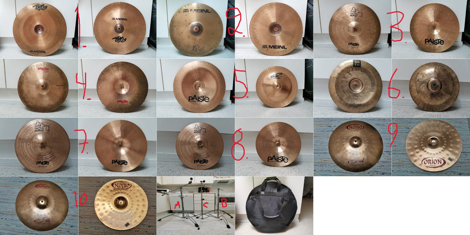 | Myyntiin kuvan symbaalit ym. 1: 20" China Meinl Raker 150¤ 2: 20" Ride Meinl Raker 100¤ 3: 16" Crash Paiste Alpha 50¤, reiässä vähän kulumaa yms. 4: 14" Crash Paiste 3000 120¤ 5: 16" China Paiste 502+ 60¤ 6: 10" China Stagg DH Brilliant 35¤ 7: 10" Splash Paiste Alpha 35¤ 8: 8" Splash Paiste Alpha 30¤ 9: 18" Crash Orion Revolution Pro Thin 50¤ 10: 17" Crash Orion Revolution Pro Medium 60¤ A: Pearl symbaaliteline 50¤ B: Mapex symbaaliteline 40¤ C: Nimetön rimpula-symbaaliteline 10¤ TKL-symbaalikassi 15¤ Symbaaleissa on käytön jälkiä, kulumaa yms., mutta yleisesti ottaen kunnossa. Symbaalit ja telineet ollut käyttämättömänä n. 11 vuotta. Jos ostat kaikki symbaalit kerralla, hinta 620¤. Jos ostat kaikki symbaalit, telineet ja symbaalikassin, hinta 700¤. Linkistä kuvat isompina: https://1drv.ms/f/c/1b6f31e3764adf1 … AAAB5z3WpUNZW_xFAUKa9Pf_Ug?e=juHqPa Yhteydenotot pikaviestitse/sähköpostilla! Voin 8"-10" -symbaalit postitse lähettää (ostaja maksaa pk:t), muuten nouto Mäntsälästä, ei ole niin isoja pahveja ym. lähettämiseen. Hinta: 30 € | |