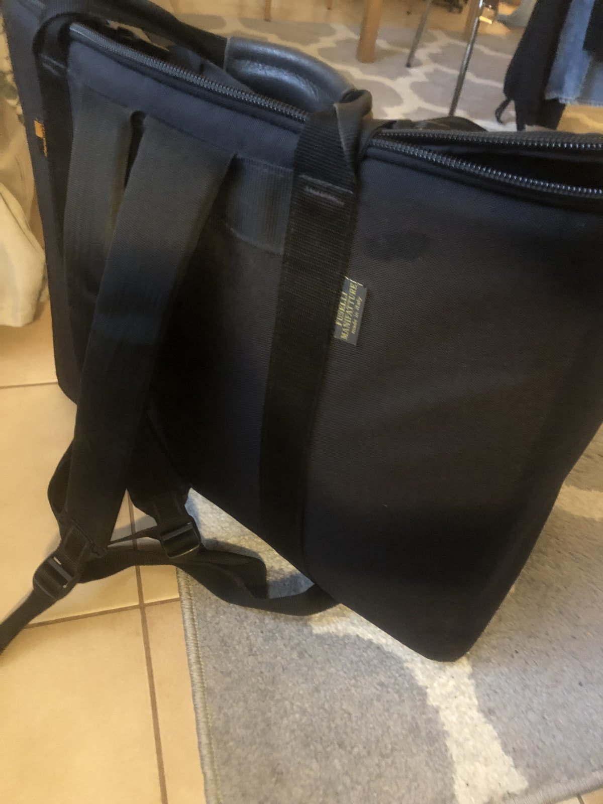 | Laadukas italialainen harmonikkareppu. Fuselli on perinteikäs valmistaja Italiassa ja reput ovat erittäin suosittuja ja pidettyjä Suomessa. Repun materiaali on kestävää kangasta, sisällä on suojaava vaahtomuovipehmuste, tukevat olkaremmit sekä ulkona vetoketjullinen nuottitasku. Reppukokoon mahtuu korkeat 4-äänikertaiset ja cassottoharmonikat (standardibasso). Harmonikan korkeus (palkeen pitkältä sivulta) max. 50cm. Hinta uutena 160¤ Hinta: 60 € | |