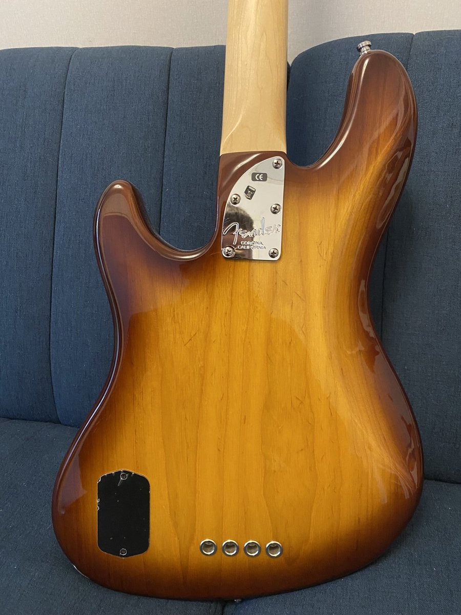 | Otsikon mukainen basso vuodelta 2006, Made in U.S.A Passiivimikit, 3 kaistainen aktiivi EQ, (Bass / Mid / Treble boost/cut) Body on inasen pienempi kuin ”normiJazzissa”, Pari nauhaa enemmän. (Viimeinen kuva kertoo hiukan mittasuhteista) Kunto Mint On todella mainio basso Mutta Tässä on hiukan liikaa säätömahdollisuuksia Soundin suhteen näin yksinkertaiselle wannabesoittajalle. Siispä Vaihtoa voi tarjota Presariin / Telebassoon, ehkä passiiviJazzariin. 4 kieltä ja värinä jotain muuta kuin musta tai Sunburst. | |