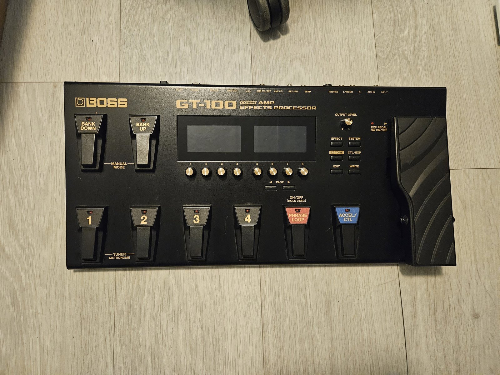 | Täysin toimiva ja hyväkuntoinen Boss GT-100 myyntiin. Rakennettu kuin tankki. Virtalähde ja ohjekirjanen mukana. Voin lähettää , mutta pitää ensin löytää sopiva laatikko lähettämiseen. Tähän voi tallentaa omia asetuksia 200kpl eli ei lopu vaihtoehdot helposti, jos tykkää soittaa monenlaista musiikkia. Laitetta voi ohjata tietokoneella, joka helpottaa asetusten tekemistä huomattavasti. Netistä voi myös ladata virallisia kuin muiden käyttäjien tekemiä asetuksia. Hinta: 240 € | |