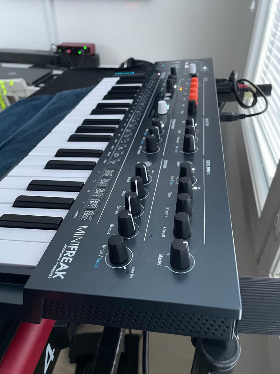 | Uutta vastaava kunto, ollut 1 keikalla, laukku kirjaimellisesti käyttämätön. Myyn, koska suunnitelmat soitinkokoonpanosta muuttuivat. Pienestä koostaan huolimatta monipuolinen ja huippusoundinen soitin. https://youtu.be/S94vj1i-0ZE?si=8VgDLzLk1U8GUgPl Mukaan tulee myös Minifreak V, software versio minifreakista. https://youtu.be/fdarosXtWUI?si=r6jw1TG7Lq3MtUNi Ostin lisäsoundipaketit ja ne on asennettuna soittimeen, lisää lklassikkosoundeja vintagehengessä: - https://newloops.com/products/minifreak-presets-bundle - https://www.lukemillion.com/product … reak-vintage-keys-deluxe-sound-bank Soitin päivitetty uusimpaan versioon, nyt sisältää Vocoderinkin :) https://www.youtube.com/watch?v=v8C1w7NiYSk Hinta: 450 € | |