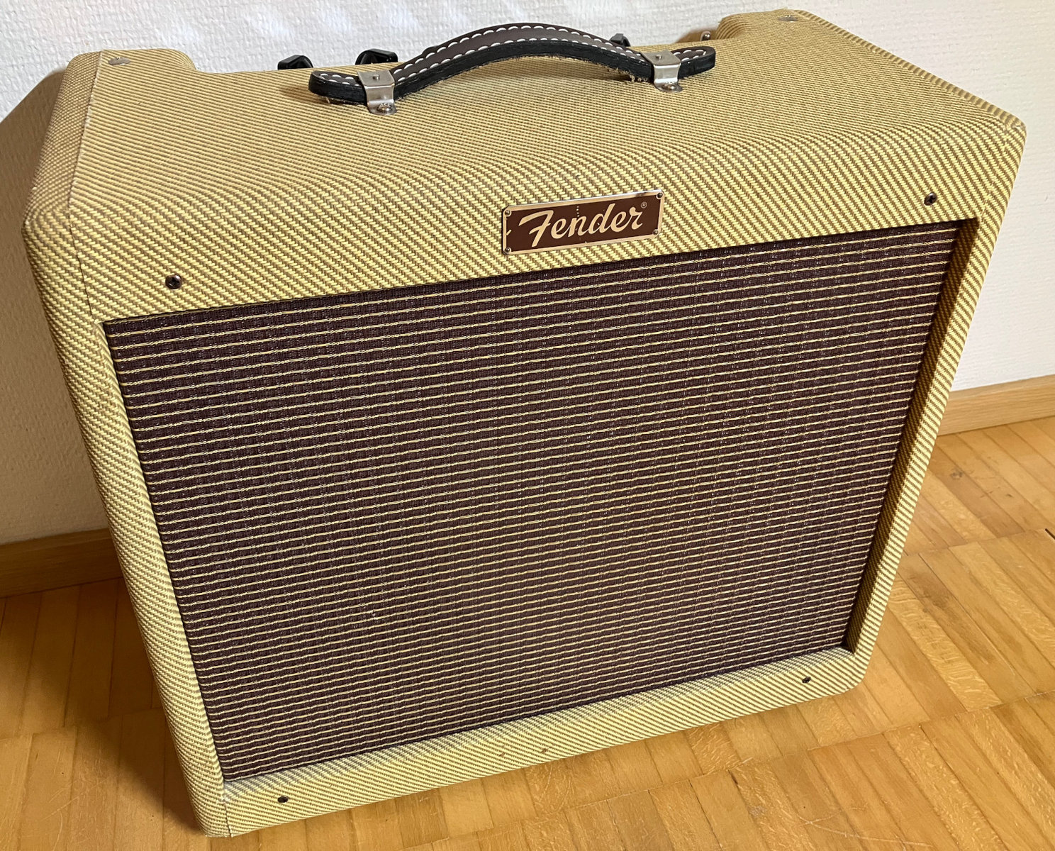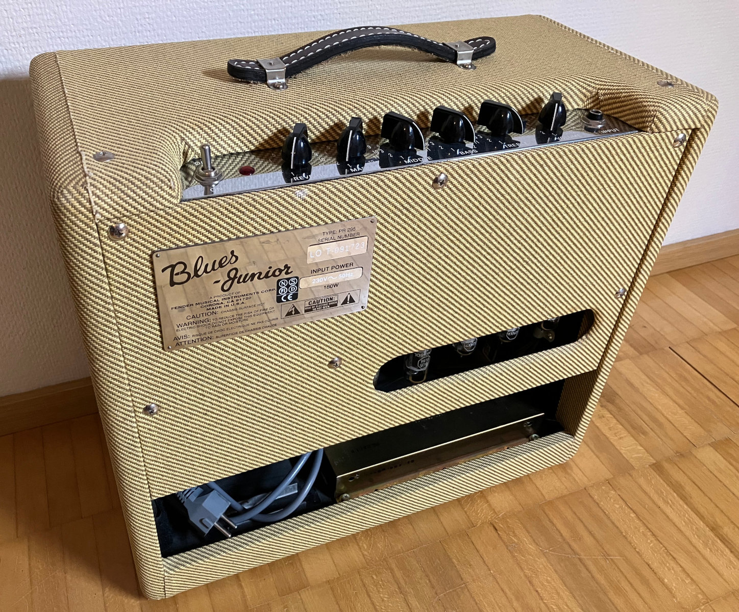 | Myydään hyväkuntoinen ja -soundinen Fender Blues Junior putkivahvistin. Alkupään Made in USA-tuotantoa, vuosimallia 1995 (Green Board, revision B). Non-Lacquered Tweed-päällys, lienee hieman harvinaisempi kuin perus Tolex-versiot tältä aikakaudelta. 12" Eminence-elementti Fenderin etiketillä. Ollut kotisoitossa, joten kunto aika lailla mint tweediä myöten. Hiljattain vaihdettu tilalle laadukkaat putket (1 x TAD E83CC + 2 x Tungsol 12AX7 + 2 x Tungsol EL84; ovh. ~150¤), soitettu näillä korkeintaan muutamia kymmeniä tunteja. Läjän vähän käytettyjä varaputkia saa halutessaan mukaan. Koesoitto onnistuu kerrostalovolyymilla. Hinta: 550 € | |