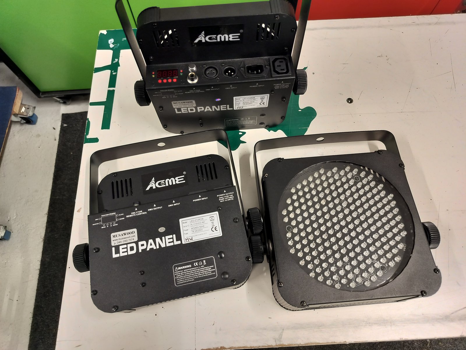 | Tarpeettomana vähän vanhemman koulukunnan led-paneelit. Tehoista ei täyttä tietoa, mutta pesuvoimaa riittää kyllä riittävästi. 70 red, 71 green ja 71 blue lediä. Avautumiskulam 15 astetta. Hinta 140¤ / 8 kpl Hinta: 140 € | |