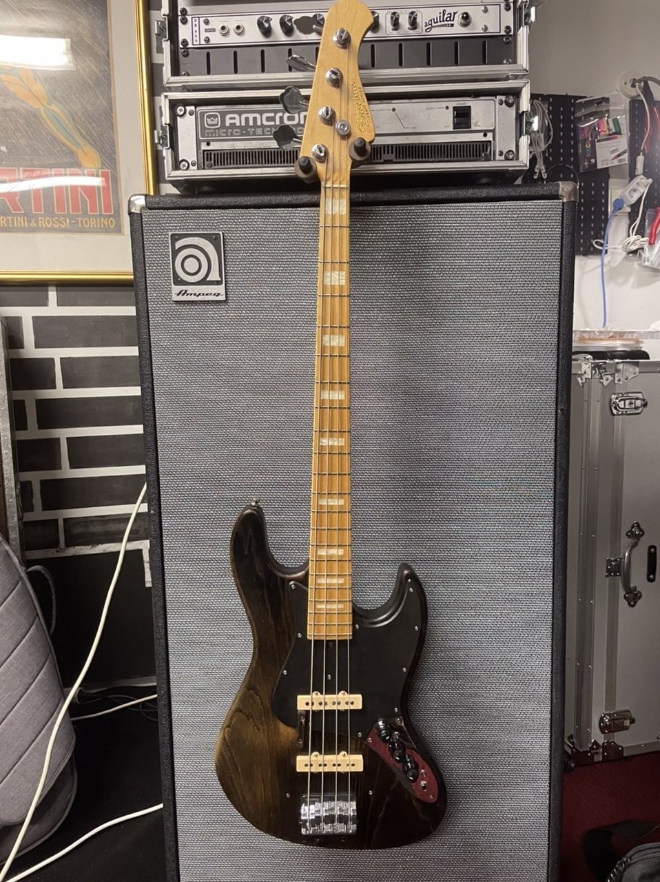 | Hetkellisestä mielenhäiriössä ja vain siksi aikaa kun himoitsemani laite on myynnissä laitan tämän jatsarin myyntiin. Japanissa tehty käsitykseni mukaan 2000-luvun alussa. On kokenut minulla ja ainakin edellisellä omistajalla kaikenlaisia päivityksiä. Soundillisesti ja soitettavuudeltaan ollut omia lempparibassoja kuten käytönjäljistä näkee. Japanilaisten työnlaatu on tässä taas ollut ihailtavaa. Tässä tällä hetkellä kiinni ja mukaan tulee: - Lundgren Hot Jazz mikit kermakuorilla - John East J-Retro preamp - Schallerin virit ja hihnalukot - Babicz talla - Kolme eri pleksiä: orkkis valkohelmiäis sekä kaksi teetettyä vaneripleksiä osmocolorilla värjättyinä, hiilenmusta ja vaaleanruskea - Bacchuksen bassopussukka, ihan toimiva, revennyttä taskun reunaa ommeltu kasaan. Basso Lohjalla, menojen mukaan kulkeutuu myös pk-seudulle ja lähialueille. Lähettäminen ehkä mahdollista jossain romulaukussa ostajan kustannuksella ja vastuulla. Tähän en ota mitään vaihdossa ja hinta on tuo. En itke jos ei mene. Hinta: 900 € | |