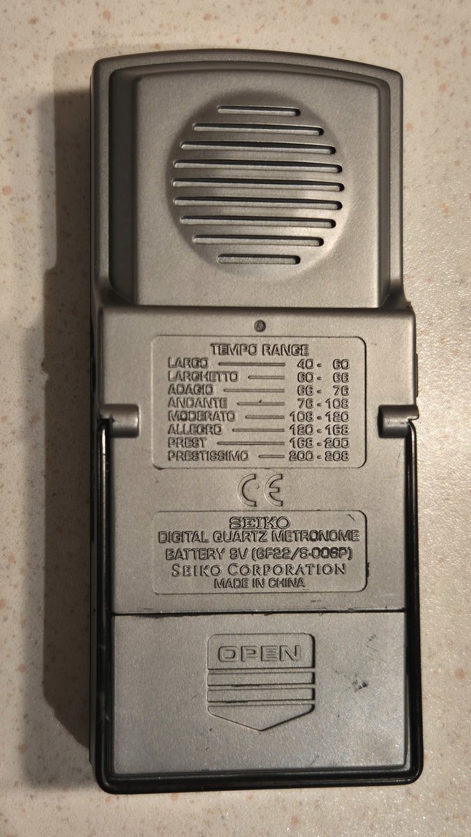 | Monipuolinen digitaalinen metronomi, jossa on laajat iskutuksen muuntelumahdollisuudet. Tässä voi helposti säätää myös klikin äänenkorkeutta, 440Hz (A) on perusasetuksena. Laitteen muistiin voi tallentaa kaksi omaa rytmiasetusta nopeaa käyttöä varten. Säädettävä äänenvoimakkuus ja 3,5 mm lähtöliitäntä. Toimii yhdellä 9V paristolla tai erillisellä 9V virtalähteellä (ei mukana). Mukaan saa suojapussin. Tämä metronomi on myös ammattilaisen mielestä hyvä ja tarpeeksi kovaääninen: https://thoughtfulgestures.wordpress.com/2010/05/28/metronomes/ Hintapyyntö 25 eur. Nouto Itä-Pakilasta. Ja voin myös lähettää lisähinnasta. Hinta: 25 € | |