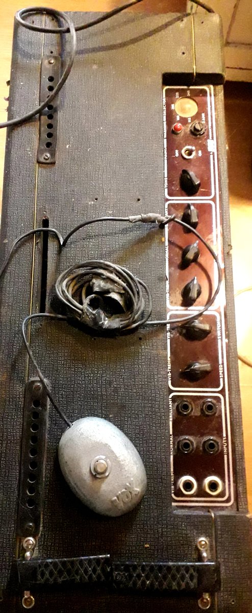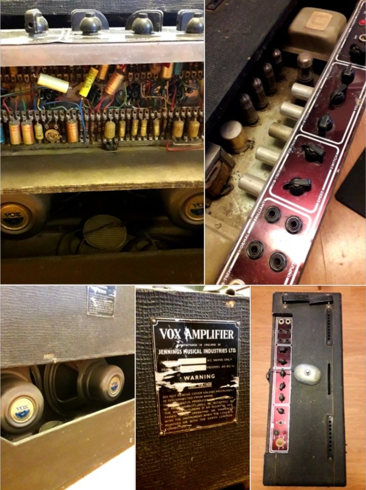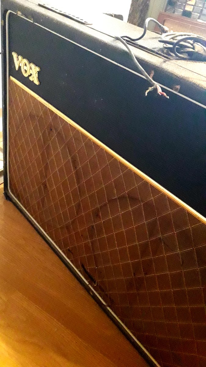 | Vanha Vox ac30, ehkä vuodelta 1964. Nyt pois nurkista. Tämän kun käy läpi, huolettomia vuosia taas lisää. Tälläkin hetkellä kyllä käy ja kukkuilee. Hinta: 2400 € | |