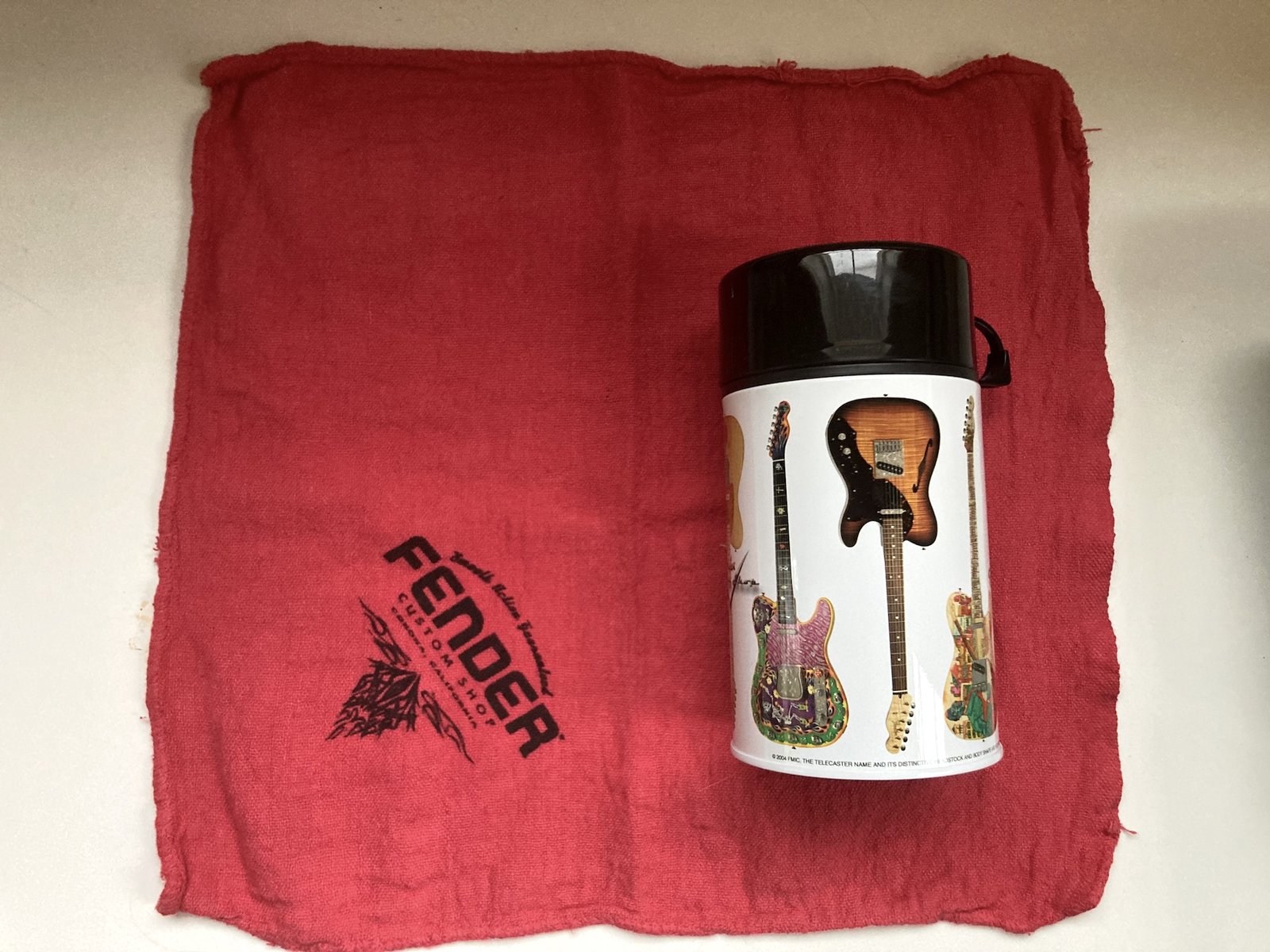 | # 653/2400. Lounaslaukku tai nuottiöljyn säilytysrasia, kitaratarvikelaukku, mitä vaan haluat. Kaapin syvyyksistä löytynyt, aivan käyttämätön ja tarpeeton. Mukana Custom Shop -ruokaliina (?) ja Fender Telecaster kuvilla varustettu termari. Näitä ei joka paikasta enää löydäkään. Ulkomitat (suunnilleen): 22x17x9,5 cm. Tagit: Fender, Telecaster, Fender Custom Shop, eväsrasia, lounaslaukku, kitaratarvikelaukku Nouto tai toimitus sopimuksen mukaan. MH-paketti 10,40¤. Hinta: 55 € | |