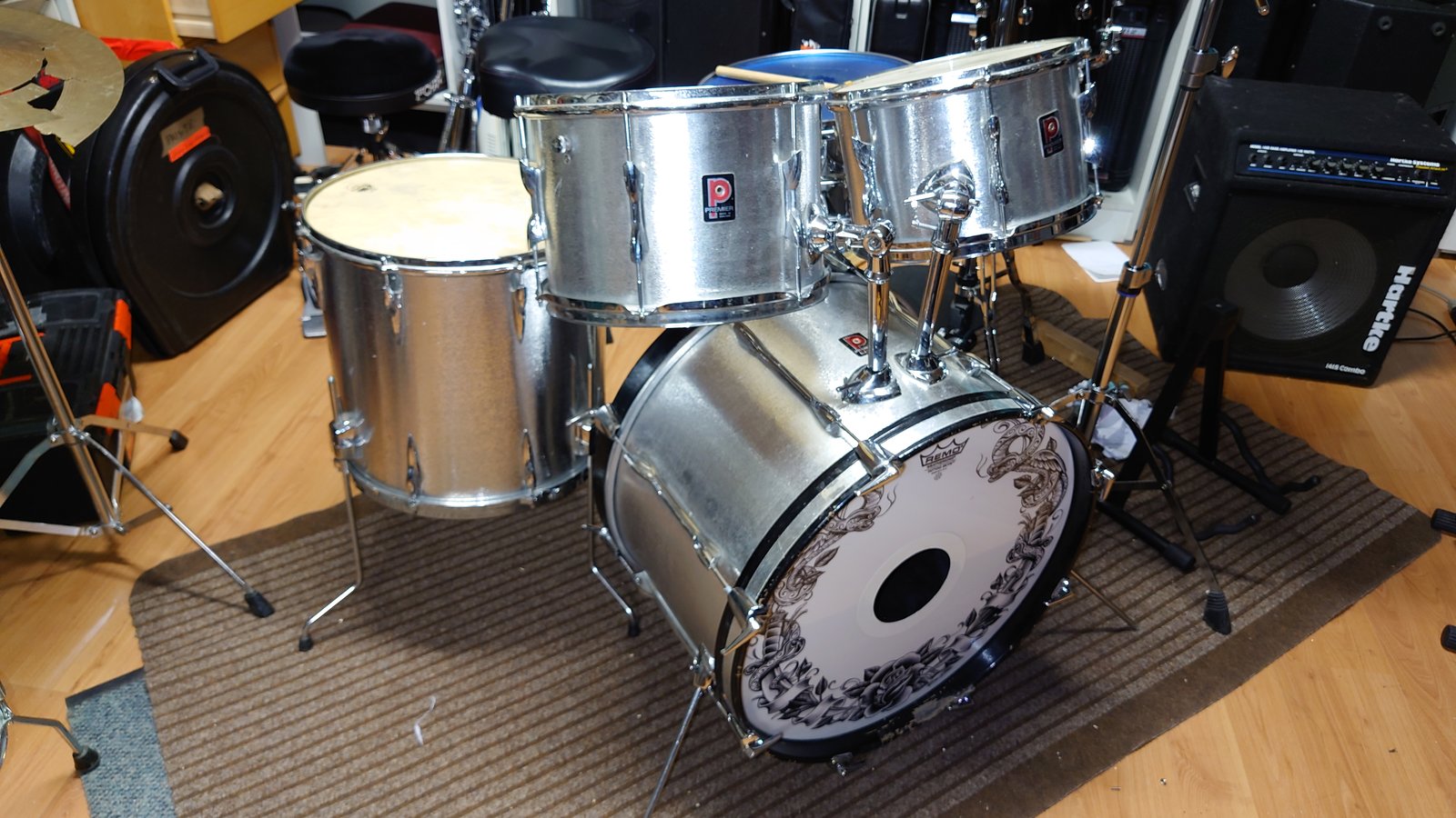 | Sonor Sclass Maple: - hienosti soiva vaahterasetti - ohutrunkoinen,kevyt roudata. https://www.sonormuseum.com/1995+/sclassmaple/S-Class_Maple.html Basarit ............ 2x 22x16" Tomit 3 kpl....... 10,12,16" Tuplatomiteline Tomit voi ripustaa myös basarien päälle .........1100,-¤ Peltitelineitä lisähintaan ! ####### Sonor Performer Valkoinen pyökkirunkoinen setti. koot 22*16" 12,16" orkkistelineitä : -hihat - 2 peltitelinettä Hinta 650,-¤ Ludwig virveliteline setin ostajalle 30. ¤ ###### Vähennän usemman setin varastosta. ei ehdi soittaa kaikilla. 1. Premier Resonator koivu. - 22*16",10,12,12,,14. ....... 800¤ 2. Premier Elite mahonki - 22*16",12,13,16. .............. 600¤ 3. Premier Heritage Artist Birch...... 800¤ - 20*8",10,13". 2 virveliä 14*5,5".13*5,5". - oranssi lakkapinta 4. Premier ihanan rumat. - 20*14",10,12, 16," 14*4,5" pikkutomit pre-int,lattitomi 16" john grey Hinta........ 600¤ 5.Rogers Big-R - 24*16",13,14,18". virveli 14*6,5 Hinta virvelin kanssa ...... ............1100¤ 6.Rogers Big-R Butchers Blog 22*16",12,13,16" virveli 14*5,5".(script logo) Hinta ....... 1300¤ 7. Kumu 16*12",8,13". ................ 1200¤ 8. Tama Coctail Jam https://www.thomann.de/fi/tama_cocktail_jam_kit_bos.htm 12,10,14,16"...... ............ 450¤ Hinta: 650 € | |