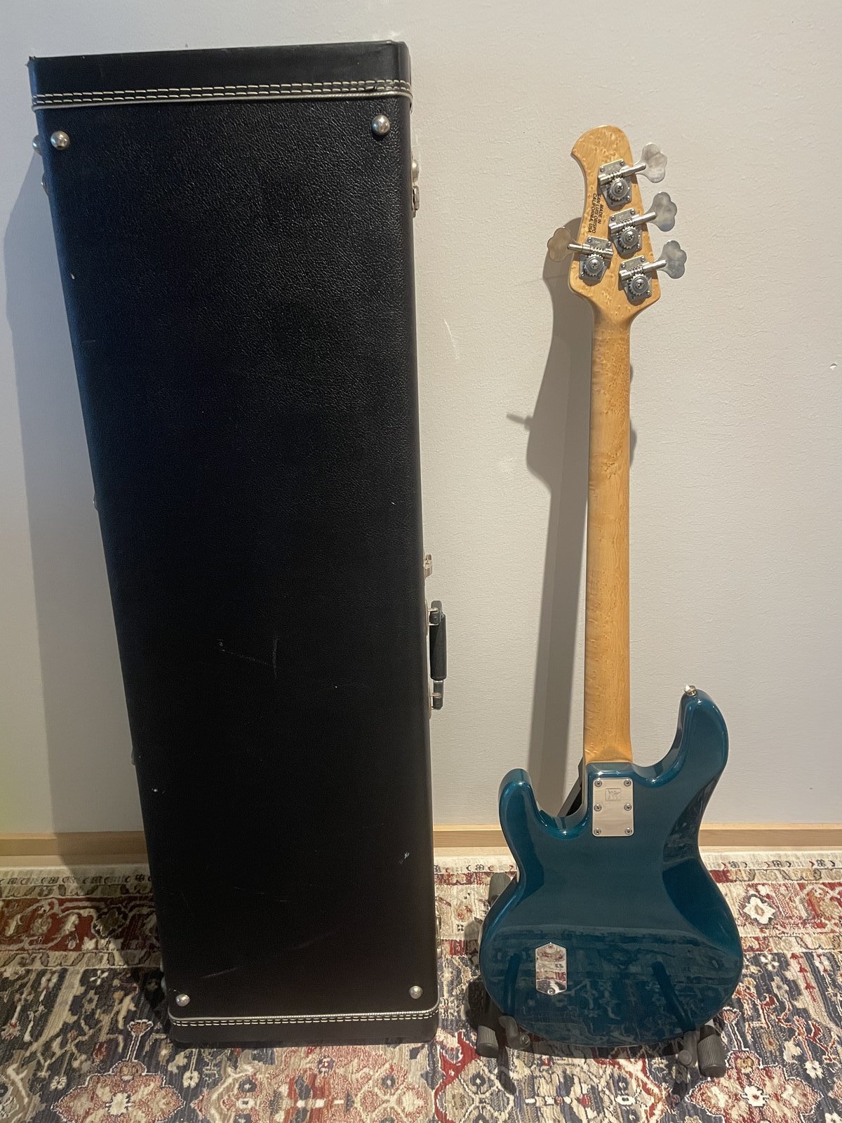 | Tästäpä myyntiin Ernie Ballin Stingray musari vuodelta 1995. Tässä yksilössä 2-band-EQ eli volumen lisäksi potikoissa treble ja basso. Body on tehty saarnista, kaula on kaunista linnunsilmävaahteraa ja otelauta ruusupuuta. Viralliseksi väriksi on sarjanumerohaussa listattu ”teal”. Tässä musarissa on kaikki mitä musarilta voi haluta, soi hienosti, löytyy se signature-growl mutta soundillisesti sopii myös monipuolisesti eri musiikkityyleihin. Joitain pienenpieniä kolhuja ja käytön jälkiä bassossa on, mutta muutoin on siistissä ja hyvin pidetyssä kunnossa. Mukaan tulee kova laukku jossa hyvät pehmusteet sekä joitain alkuperäisiä lappusia. Nouto Jyväskylästä. Vaihtuu vain rahaan. Hinta: 1300 € | |