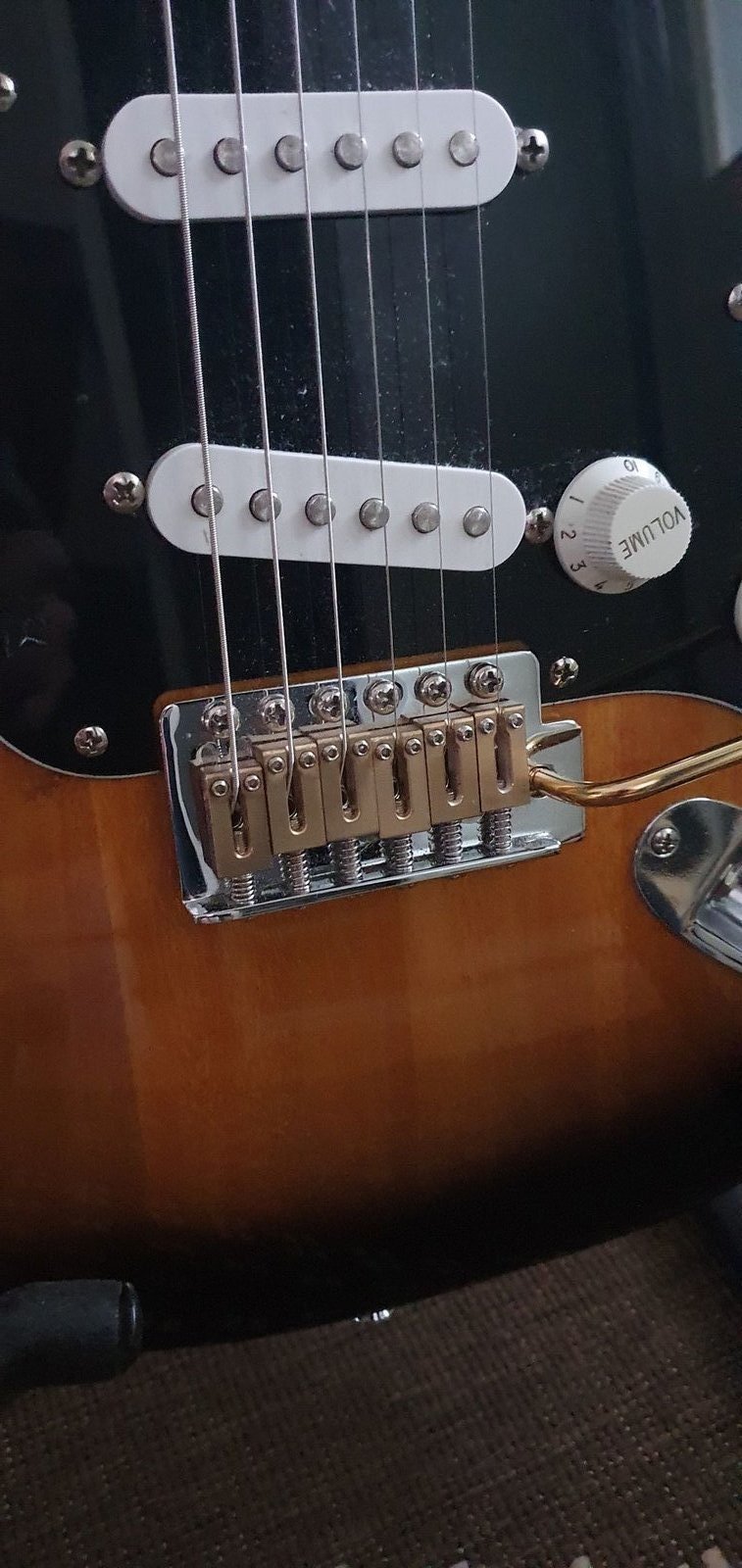 | Hyvä Squier palacaster, kaula CV 60´s, muut palikat jostain toisesta stratosta. Hyväkuntoinen ja -soittoinen kitara, vaihdettu myös kunnon messinkitalla jossa iso blokki. Säädetty, huollettu peli jossa ei vikoja. Vaihtuu myös jos löytyy sopiva Tele. Hinta: 250 € | |