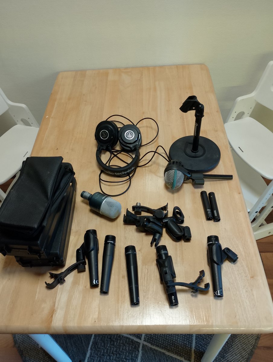 | Myyntiin vähän käytettyjä tavaroita. Kuvan muut tuotteet jo myyty..! 1 kpl Superlux -basarimikki. Annetaan pois. Kiinnitysruuvi irronnut, hieman hutera. Tätä en yksinään lähetä. 1 kpl K&M overhead-ständi snare-varrella. 50¤. Mielellään nouto. 1 kpl Audio-technica ATH-M40X -kuulokkeet. 70¤ Steinberg UR824 -äänikortti. 300¤. Mainio laitos. Itel ei enää käyttöä, kun siirryin sähkörumpuihin. Pearl eliminator -tuplapedaalit. On klappia ja väljyyttä. Tarjoa jotain.. Voidaan yhdessä tai erikseen myydä kuvassa näkyvää rekvisiittaa (cami-paloja, nuijia..) tarvitsevalle. Myynnissä myös tori.fi -sivustolla. Parempia kuvia pyydettäessä. Hinta: 11111111 € | |