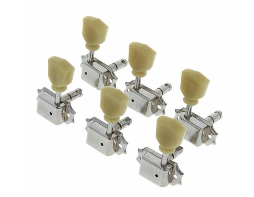 | Avaamaton pakkaus nikkelin värinen koneisto nuppi Pearloid Erittäin näppärä ja vintage-tyylinen virityskoneisto modernilla vakaudella, välityssuhteella sekä jämäkkyydellä. 3+3 -malliselle virityskoneistolle suunniteltu malli on helppo ja suora korvike moneen perinteiseen Gibson-malliin tai helppo päivitys edullisempiin soittimiin. Ominaisuudet: Gotoh SG90-SL 3+3 Nickel Valmistusmaa: Japani Väri: Nikkeli Viritinjärjestys: 3+3 Tukiruuvin sijainti: Vintage-tyyliin ylhäällä ja alhaalla Viritinreiän koko: 8.8mm Viritystapin korkeus: 19.5mm Hinta: 40 € | |