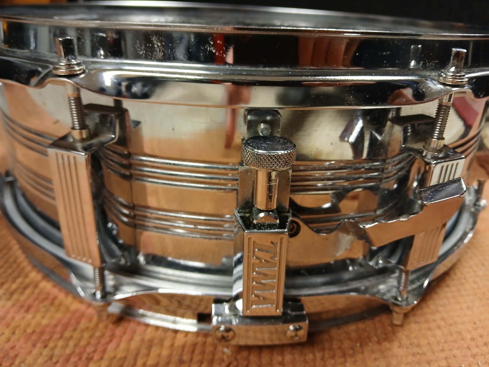 | Made in Japan Tama. Hyvä perus metallivirveli -90 luvulta. Kulkenut keikkavirvelinä aikanaan, nyttemmin jäänyt hyllyyn pölyttymään. Kierteet ja lugit kunnossa. Ei kolhuja, pinnassa pientä hapettumaan jonka varmaan saa kiillotettua pois. Evans Level 360 musta yläkalvo ja kirkas alakalvo. Matto perus Taman. Testaamaan pääsee Oulussa. Ostajalle postit. Hinta: 100 € | |