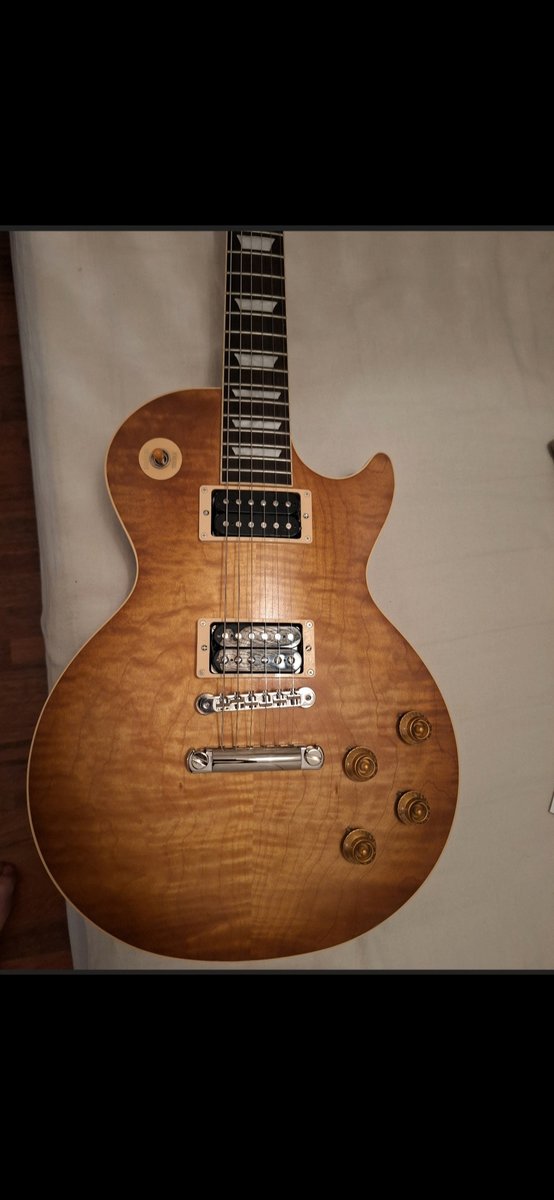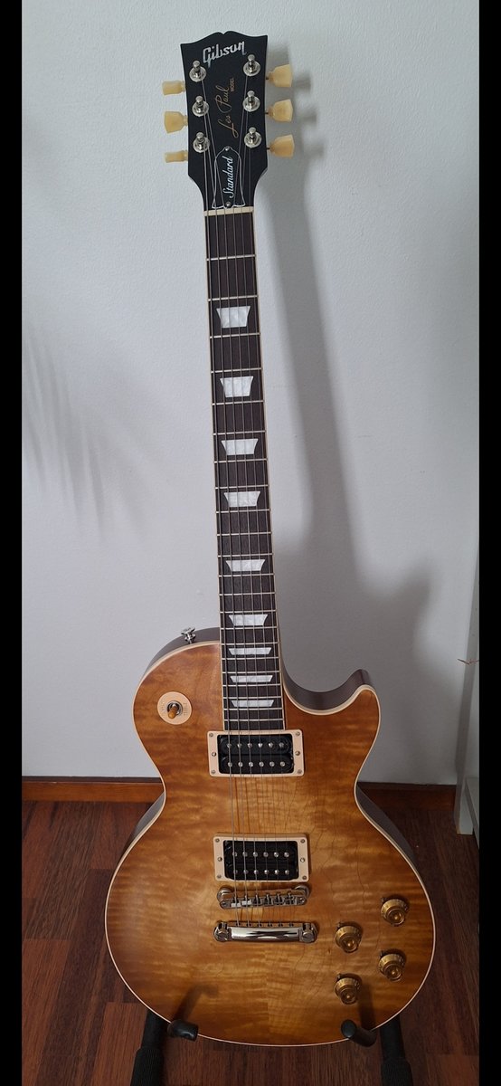 | Myydään vuosi sitten uutena hankittu, täysin moitteeton Gibson Les Paul sähkökitara. Mukaan tulee kaikki alkuperäisessä pakkauksessa olleet tarvikkeet/todistukset ja gibson kovakantinen pehmustettu kitaralaukku. Ostokuitit yms. myös tarvittaessa Ostin tämän rannevamman takia akustisen tilalle ohuemman kaulan takia, mutta ei kestä soittaa tätäkään joten olisi syytä siirtyä soittavaan kotiin N. 2500 maksoin ja uudenveroisena lähtee eteenpäin, tarjoukset otan myös huomioon Hinta: 2000 € | |