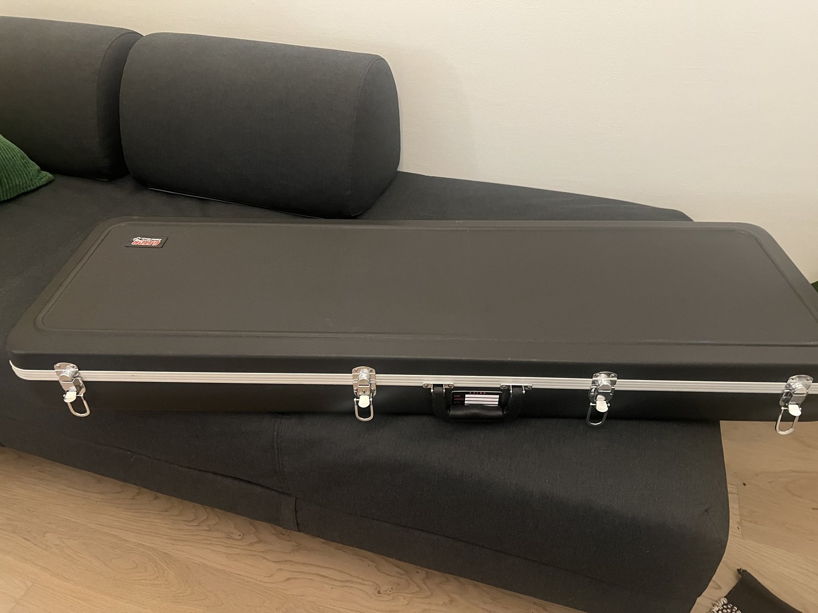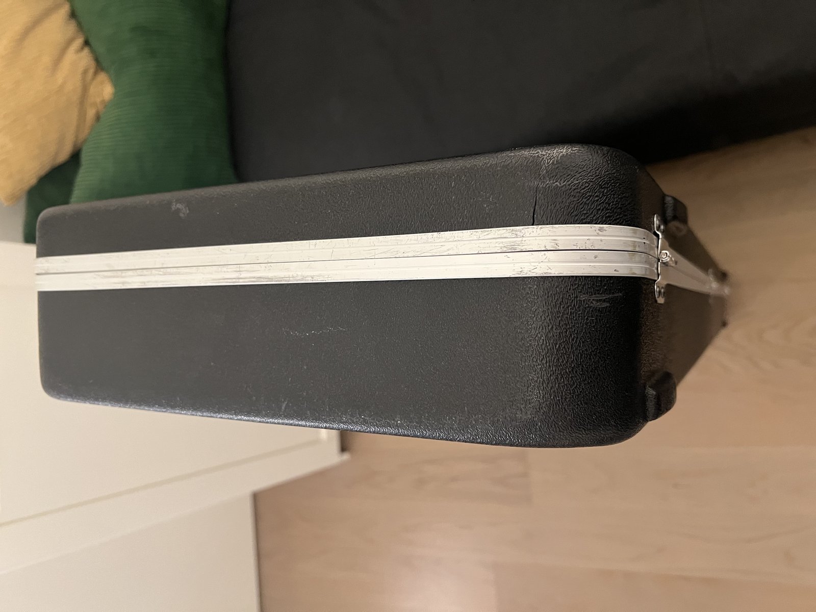 | Keys are also available. Serves the purpose but has a small crack, as visible. Pickup from Munkkivuori or near University of Helsinki metro station. This hard-shell case is designed to provide robust protection for a standard electric bass guitar. The exterior is constructed from impact-resistant ABS plastic, featuring heavy-duty aluminum valances and chrome-plated lockable latches for security. Hinta: 10 € | |