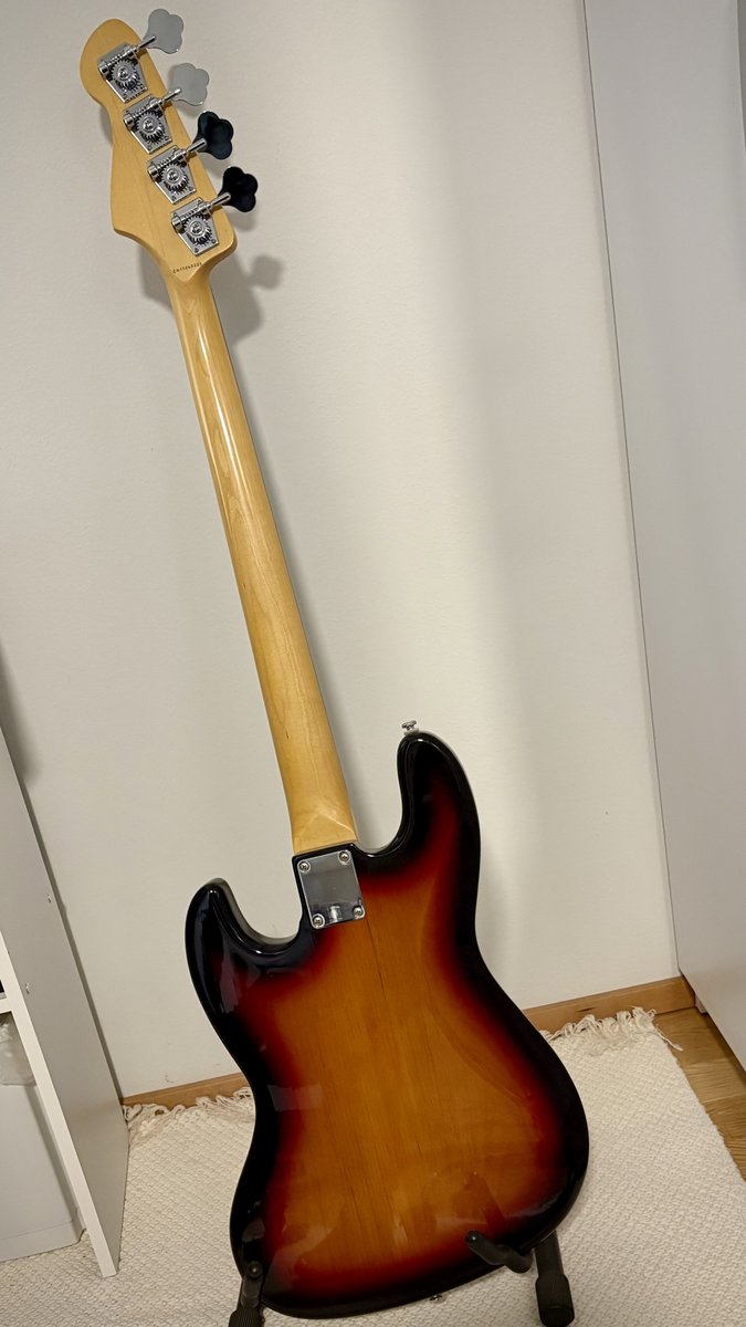| Tokain ”Jazzari”. Made in China 2011. Omasta ja muidenkin mielestä hyväsoittoinen basso ohuen kaulan ansiosta (kitaristitkin tykkää). Muutenkin hyvissä säädöissä ja erittäinkin soiva peli. Myyn vain koska osui toinen hankintalistalla ollut kohdalle ja tämä jäi työttömäksi. Yksi n. 1 cm painauma bodyn yläosassa, muuten OK. Tästä kuva erikseen. Korjattavissa esim. kynsilakalla helposti. Mikrofonit vaihdettu DiMarzion DP123 settiin, joka uutena tällä hetkellä n. 170e. Ks: https://www.dimarzio.com/pickups/ja … bass-hum-canceling/dimarzio-model-j Sähköt myös kustomoitu ja tällä hetkellä push-pull potentiometreillä toteutettu ”split coil/phase reverse” konfiguraatio. Tämän ansiosta erittäin monipuoliset äänen säätömahdollisuudet. Hinta mainituilla modauksilla. Jos ei synny kauppoja palautan alkuperäiseen konfiguraatioon. Kokeilumahdollisuus Vantaan Koivuhaassa akustisesti / kuulokkeilla tai Helsingin Pitäjänmäessä treenikämppävoluumeilla. Ei ole laukkua mukaan, voin lähettää Matkahuollon kautta ostajan vastuulla (ja maksamana) pahvilaatikossa. Hinta: 490 € | |