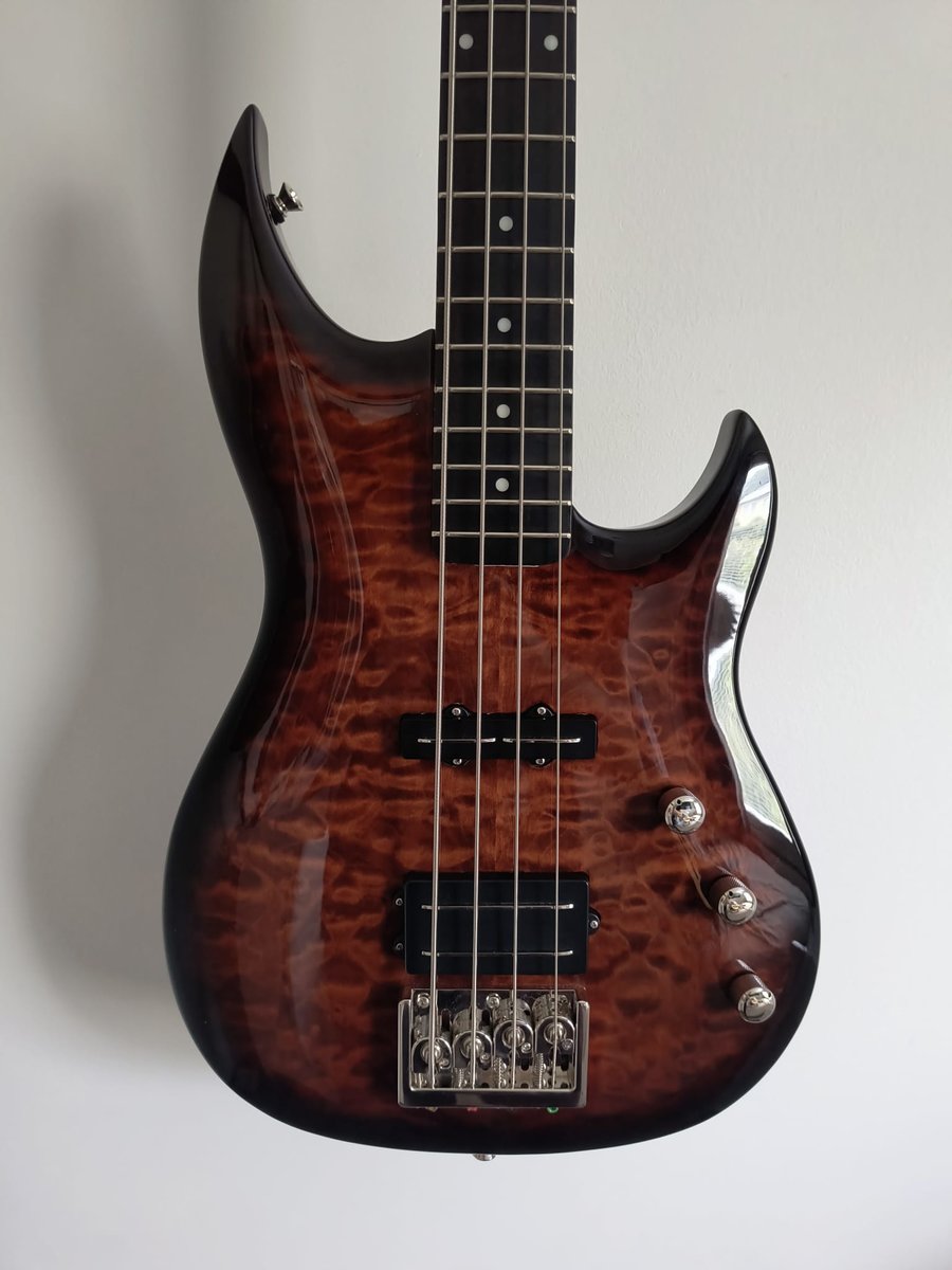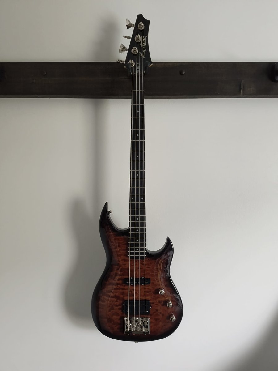 | Myynnissä todella hyvässä kunnossa oleva Hagströmin 4-kielinen kevytsoittoinen ja kapeakaulainen passiivibasso. Monipuolinen äänensävyn säätö 5-asentoisen mikrofonivalitsimen ja tone-potikan ansiosta. Potikat siis volume, 5-asentoinen mikrofonin valitsin ja tone. Valmistettu syyskuussa 2008. FXB530-mikrofonit: HJR-900N + Dyna Rail -humbucker. Netissä heikosti infoa näistä, mutta saa tulla Raumalle testailemaan tai vaihtoehtoisesti voin ottaa halukkaille jotain tallennetta treenikseltä tämän kanssa. Toimitus onnistuu, mutta ostaja maksaa toimituskulut. 50¤ lisähinnasta mukaan hardcase, jolla lähetys turvallista. Onnistuu myös ilman hardcasea pahvilaatikkoviritelmällä ja "helposti särkyvänä" toimituksena. Yhteydenotot pikaviestein tai whatsappilla/tekstiviestein. Hinta: 350 € | |
