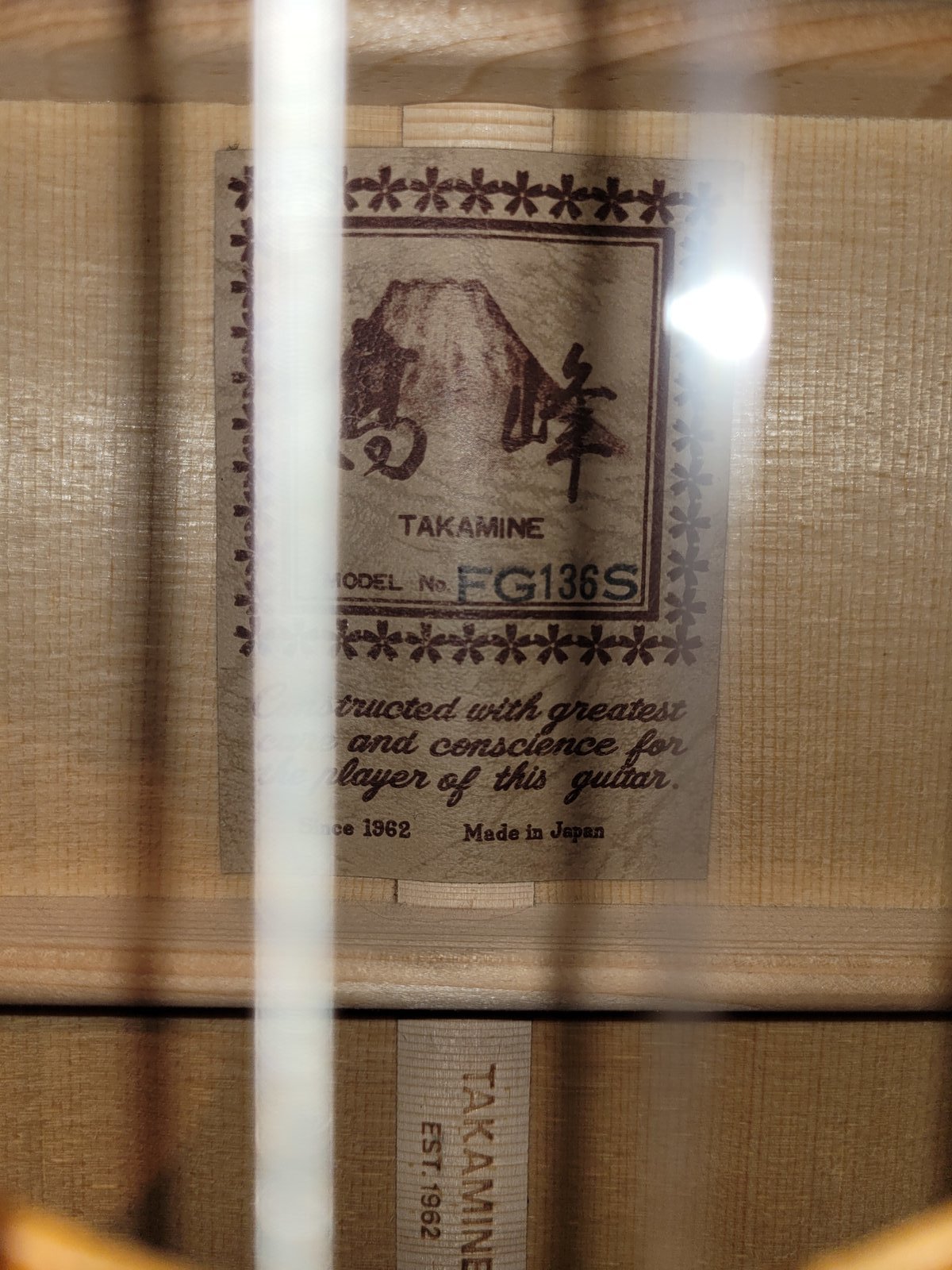 | Upeakuntoinen ja harvinainen Takamine FG 136S flamenco. Kitarassa on kokopuinen seetrikansi ja sivut sekä selkä ovat sypressiä. Vaihdettu juuri uusi kielisetti ja varasetti tulee mukana. Kova laukku kuuluu mukaan kauppaan. Nouto Keravalta tai lähetys matkahuollolla ostajan laskuun. Huom. Kannessa ei ole halkeamaa vaan se on läpinäkyvän colpeadorin reuna (suojus). Made in Japan. Hinta: 650 € | |