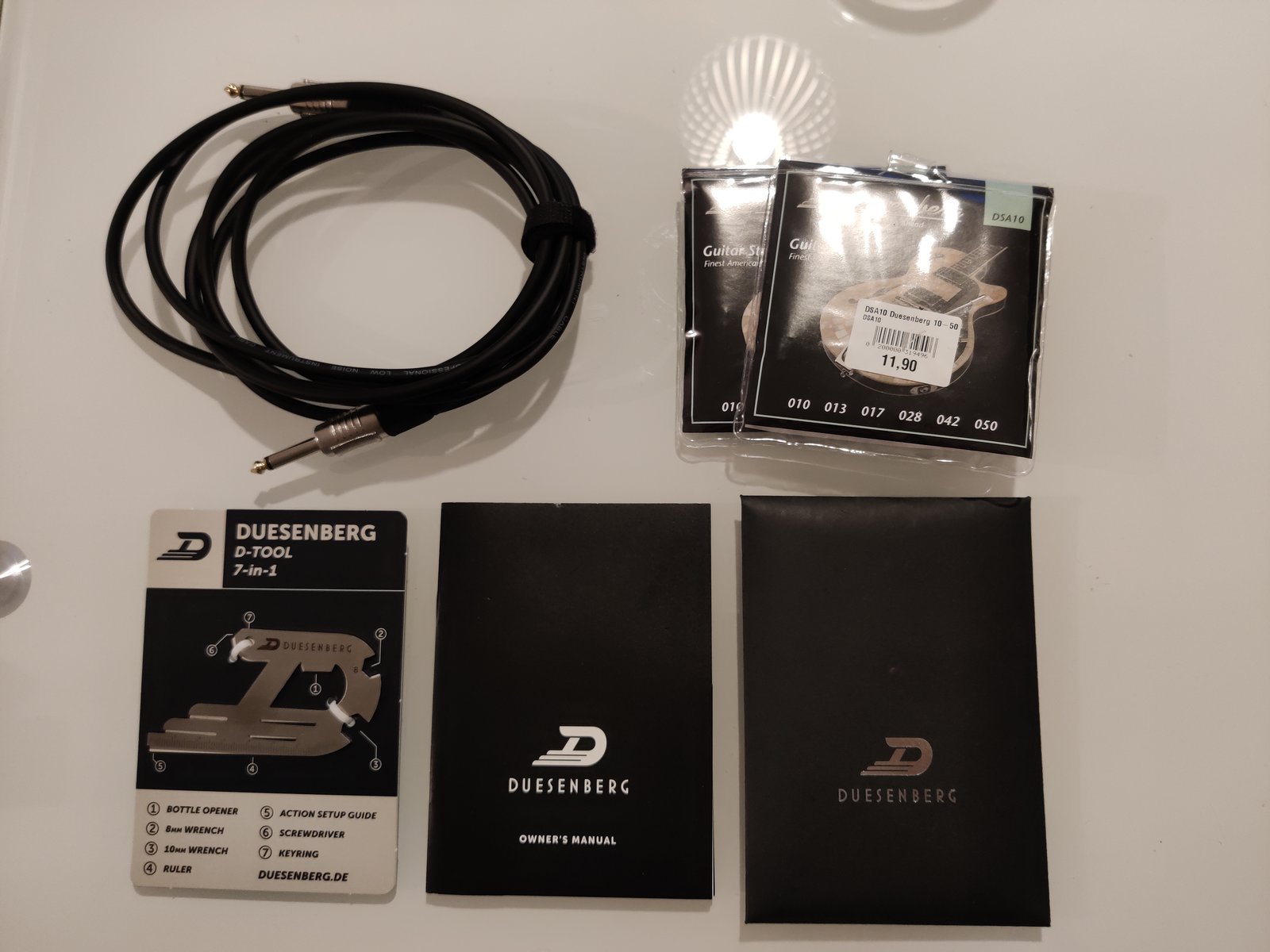 | Uudenveroinen, lähes käyttämätön Duesenberg Bonneville- sähkökitara. Simppelin tyylikäs soittopeli oman elämänsä rokkistaralle! Tuotannosta poistunut malli, joten toista yhtä vähän soitettua on varmasti vaikea löytää. Mukana tulee: Duesenberg- kitarasalkku -Alkuperäiset dokumentit -Duesenberg- olkaremmi -Kitarakaapeli -Vaihtokieliä -Kitaran huoltoon puhdistusaineet -Erinäistä työkalua Nouto Tampereelta! Hinta: 1700 € | |