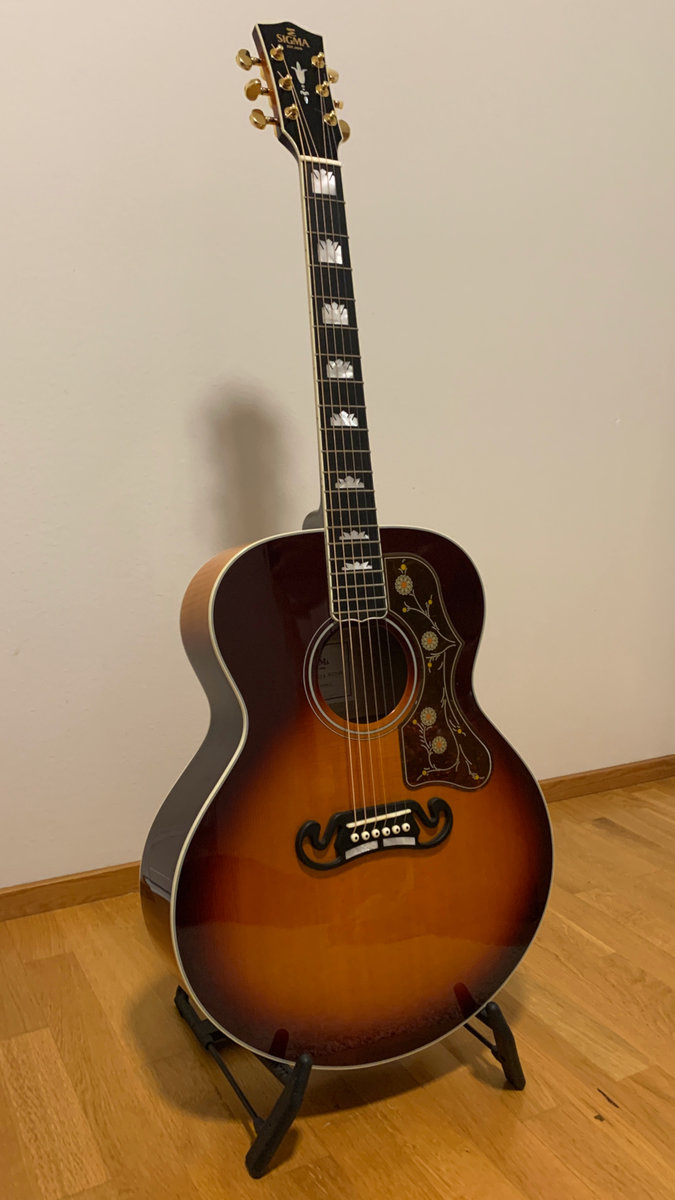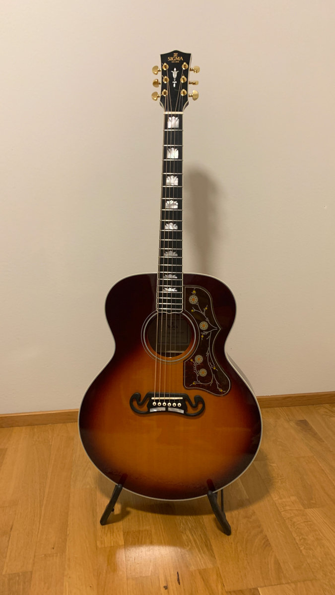 | Myynnissä Sigman jumbokokoisten huippumalli SGJA-SG200. Kansi kuusesta, kyljet ja takakansi kokopuu-vaahteraa. Soi todella isosti ja kauniisti. Varustettu LR Baggsin mikityksellä, säätimet nätisti piilossa kaikuaukon reunassa. Ostettu Kitarapajalta uutena syksyllä 2023, ollut vain kotisoittelussa ja kunto on aivan uutta vastaava. Nyt pitää pistää markkinoille, kun olen myynyt sieluni pienempikoppaisille akustisille. Mukaan tulee alkuperäinen, tukeva pehmeä kotelo, aitoustodistukset ja muut pienesineet. Lisää detaljeja: - https://www.kitarapaja.com/sigma-sgja-sg200 - https://www.sigma-guitars.com/acous … ars/sg-series-all-solid/sgja-sg200/ Kaupat naamatusten jossain pääkaupunkiseudulla tai lähialueilla ja vaihdossa en ainakaan itse tunnista tarvitsevani juuri nyt mitään. Hinta: 1150 € | |