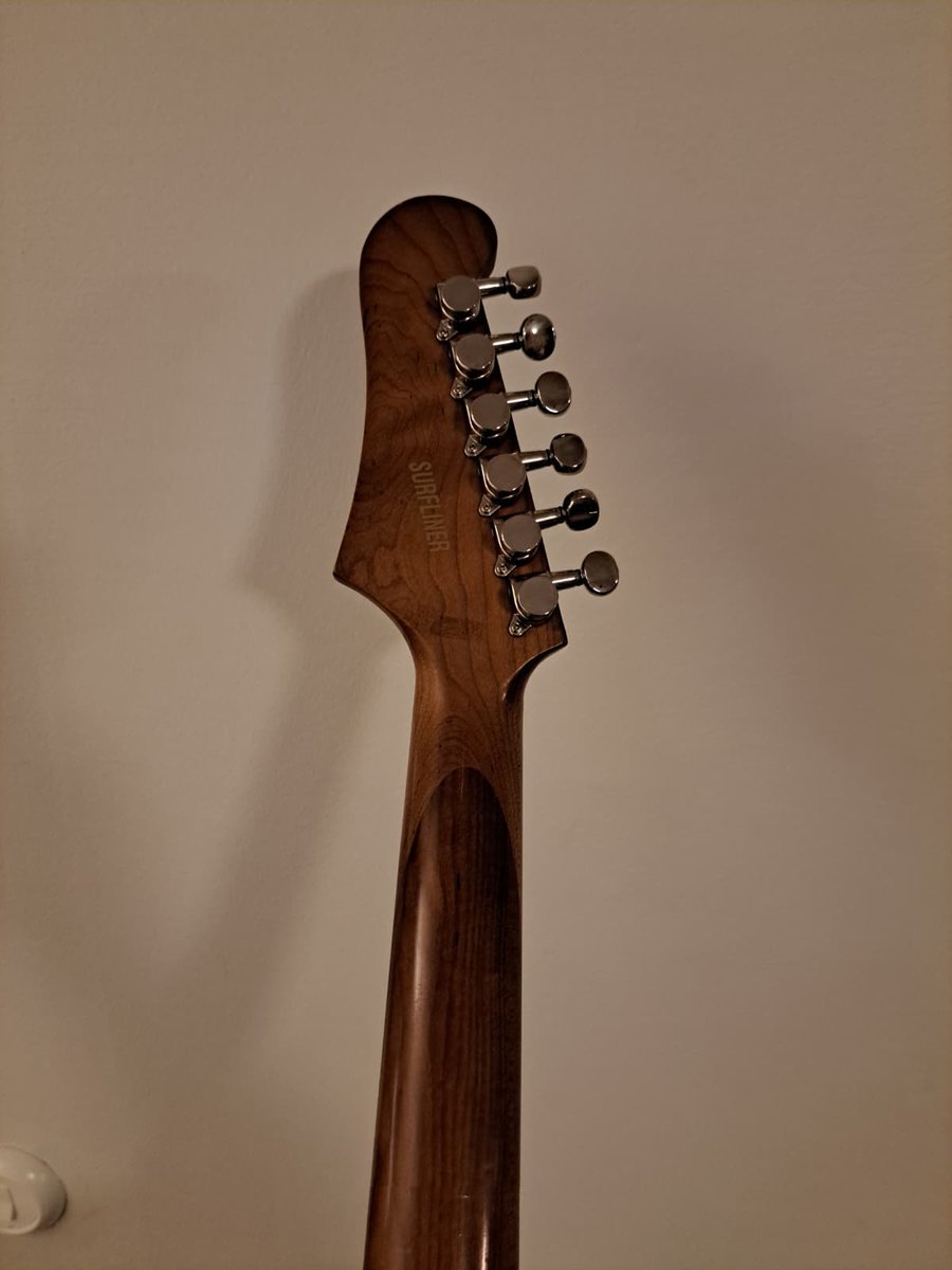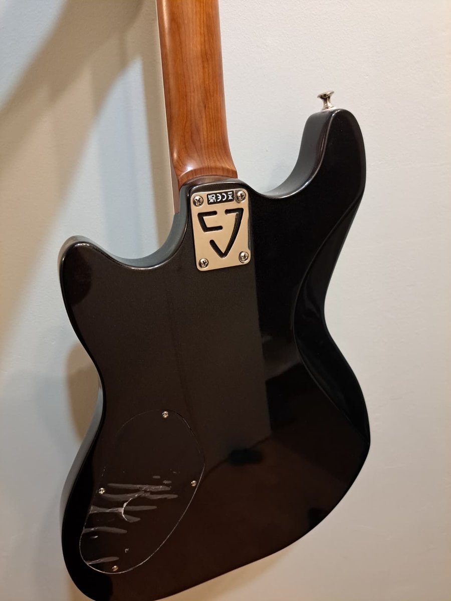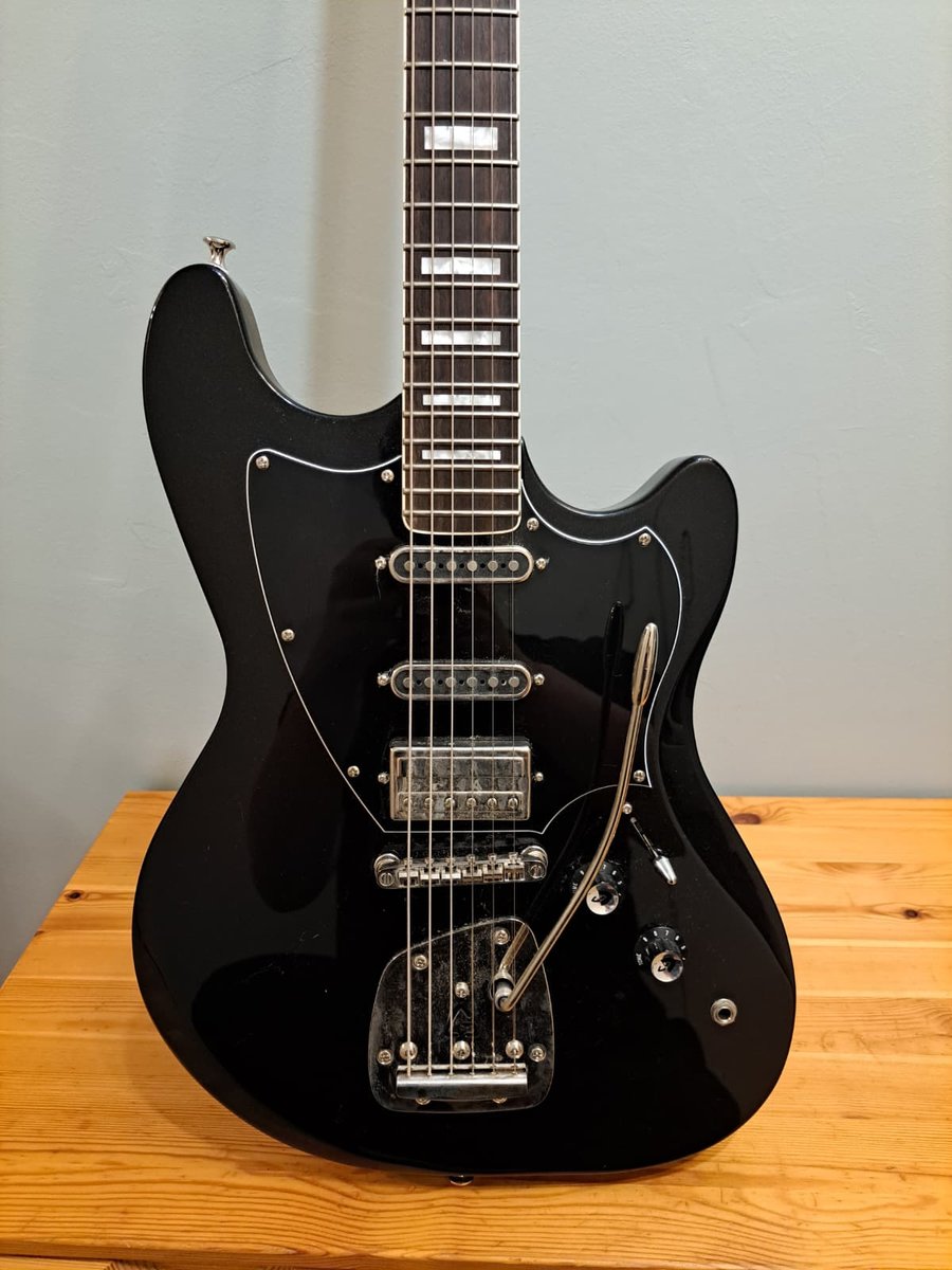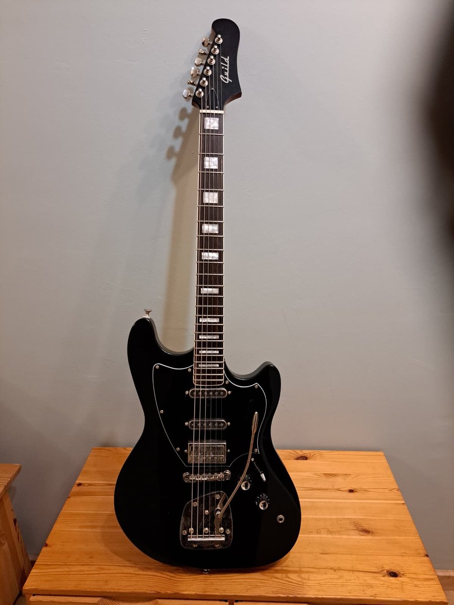 | Lähes uuden veroinen musta Guild Surfliner Deluxe. Laadukas peli. Body: Poplar Bolt-on neck: roasted premium maple Fingerboard: Rosewood Scale: 648 mm Nut width: 42.8 mm Pickups: 1 Guild HB-2 humbucker (bridge) and 2 Dearmond Aerosonic single coils (middle, neck) Volume and tone controls 5-Way switch Guild Floating Vibrato "GFV Colour: Black Metallic ei vaihtoja, miellellään nouto. Helsinki Hinta: 520 € | |