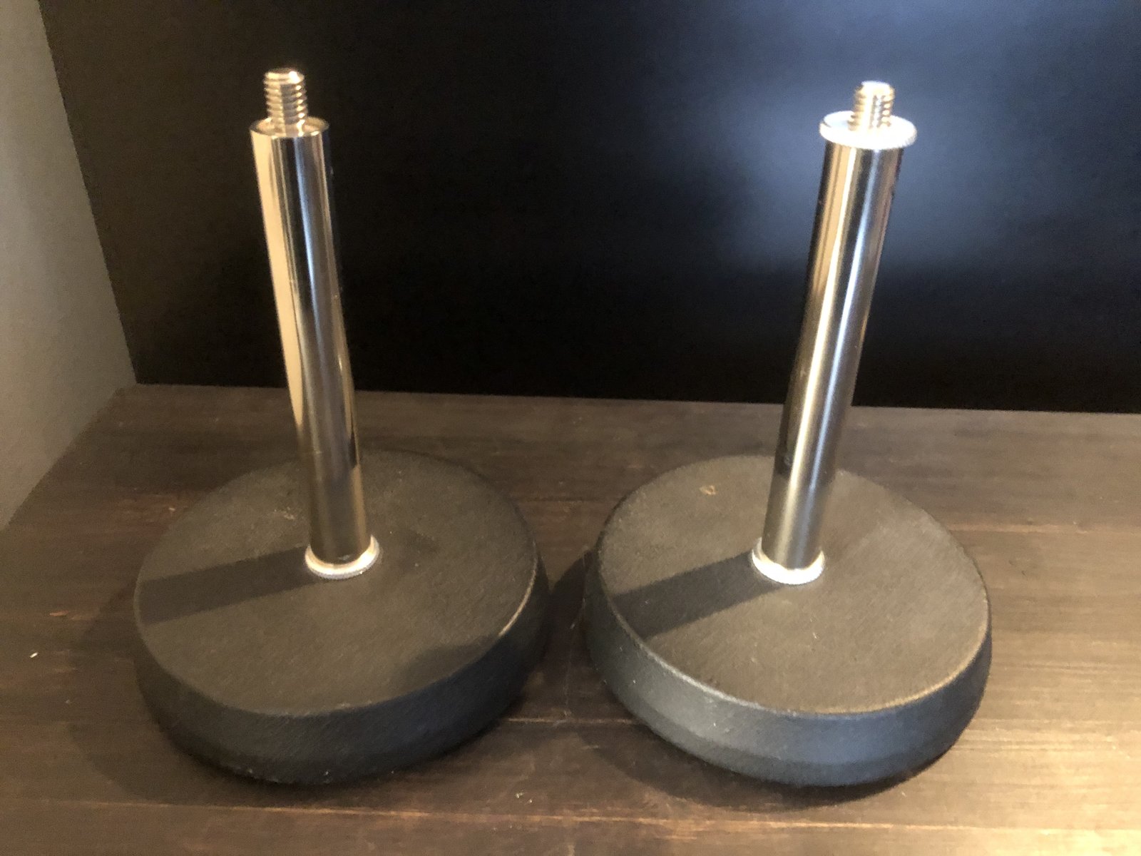 | Loistavat esim. podcast sessioihin pöytä telineeksi. Vastaavat kuin kuvassa, kumisella pohjalla ja metallin värisenä. https://www.thomann.de/intl/km_23310_table_stand.htm Uuden hinta 42¤. Tästä lähtee pariskunta 50¤ Toimivat myös ihan mini kaiuttimille tai vaikka mikkiständiksi basariin tai mihinkä vaan matalalla olevaan. Hinta: 50 € | |