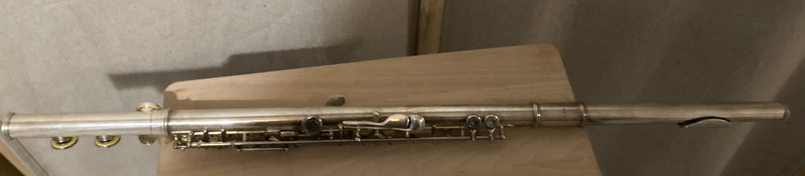 | *MYYTY* Thomann FL-200R poikkihuilu, jossa avoläpät. Myös läppien tulpat ovat kaikki paikallaan, joten voi harjoitella ensin umpiläppäisenä. Pinnassa on käytön jälkiä, mutta soitin on nähdäkseni soitettavassa kunnossa. Todellisen huollontarpeen arvio vaatisi asiantuntijan tarkastusta, mutta ainakin allekirjoittanut sunnutaipuhaltelija sai tästä muutamat asteikot irti. Mukaan kotelo ja puhdistustikku. Nouto Kuopiosta tai postitus ostajan maksaessa lähetyskulut. Hinta: 100 € | |