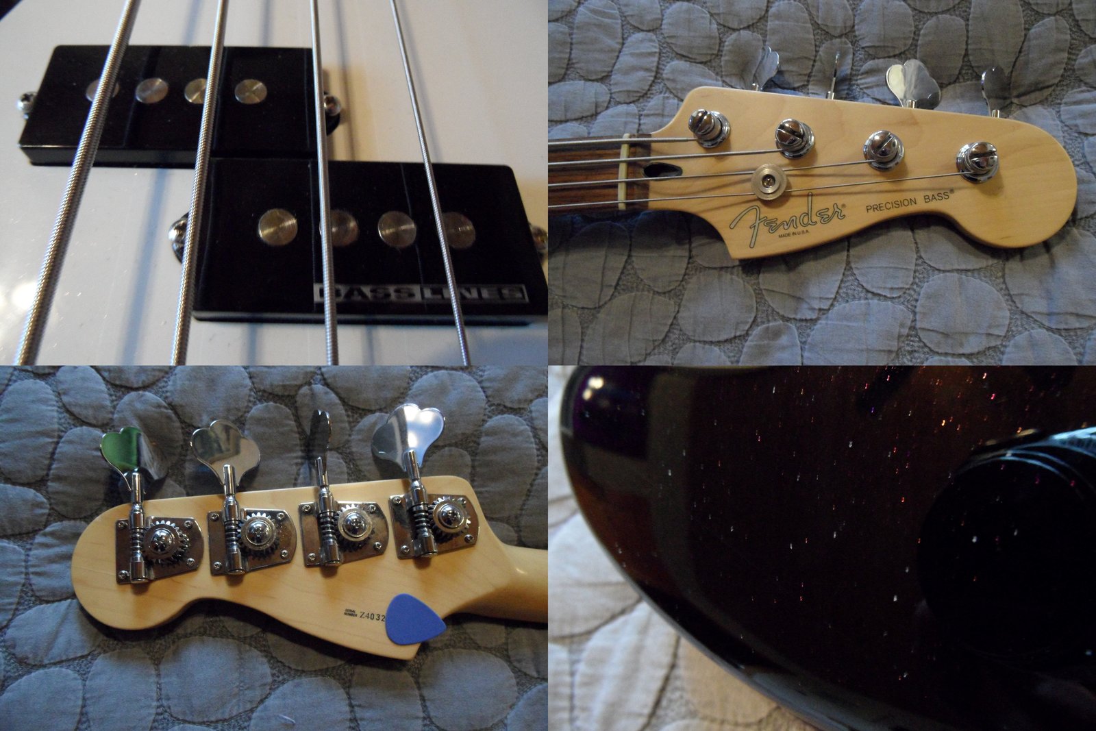 | Tarjolle todella hyväkuntoinen ja siisti Made in USA -basso, vieläpä FSR-versiona, jossa ekstraominaisuuksia. Yritän saada tuota metalliväriä näkyviin viimeisessä kuvassa. Satulan leveys 41,5 mm, kaulan paksuus 21 - 23,5 mm (I - XII), rungon paksuus 43,5 mm. Nauhat erinomaisessa kunnossa, tämä basso on muutenkin lähellä Closet Classic -tasoa - no jokunen naarmu löytyy. Mikin tasavirtaresistanssi n. 11 kΩ, hyvin jytisee. Mukaan tulee hyvä käytetty kova tweed-laukku, jossa lähetyskin onnistuu 40 ¤ lisämaksulla. Specifications Brand Fender Model Highway One Precision Bass with Rosewood Fretboard Finish Metallic Black Year 2003 - 2005 Made In United States Body Material Alder Body Shape P-Style Fretboard Material Rosewood Model Family Fender Precision Bass Neck Material Maple Number of Frets 20 Profile C Profile Pickup Configuration Split-Coil Series Fender Highway One Factory Special Run - metal flake color - grooved bridge saddles - Seymour Duncan BassLines "Quarter Pound" pickup(s); Hinta: 1200 € | |