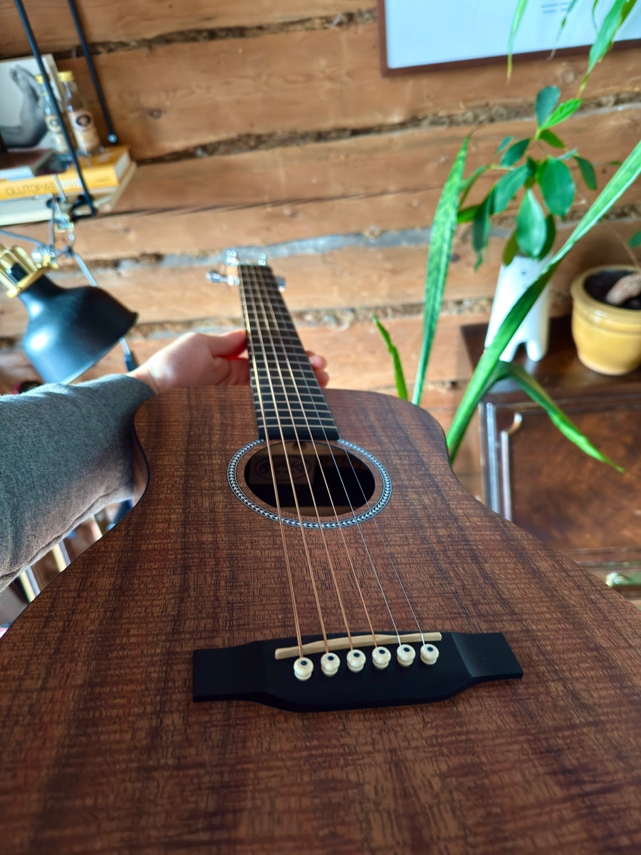| Hyvin vähän soitettu pikku Martin kauniissa KOA värityksessä, eli LXK2. Pienestä koostaan huolimatta mainio sointi. Kaunis kirkas ääni, ja materiaalistaan johtuen ei ole herkkä lämpötilojen vaihteluille. Erinomainen matkakitara, ja Martin gigbag kuuluukin kauppaan! Model: LXK2 Little Martin Construction: Mortise/Tenon Neck Joint Body Size: Modified 0-14 Fret Body materials: Hawaiian Koa HPL Pattern Textured Finish Top Bracing Pattern: Modified X Series ''X'' Neck Material: Birch Laminate - Natural Neck Shape: Modified Low Oval Headstock: Solid/LX Taper Fingerboard Material: Richlite Scale Length: 23'' Number Of Frets Total: 20 Fingerboard Width At Nut: 1-11/16'' Fingerboard Width At 12th Fret: 2-1/16'' Bridge Material: Richlite Saddle: 16'' Radius/Compensated/White Tusq Tuning Machines: Chrome w/ Small Buttons Case: Padded Gig Bag Kysy lisää ja tarjoa! Postitus onnistuu myös 👍🏻 Hinta: 380 € | |