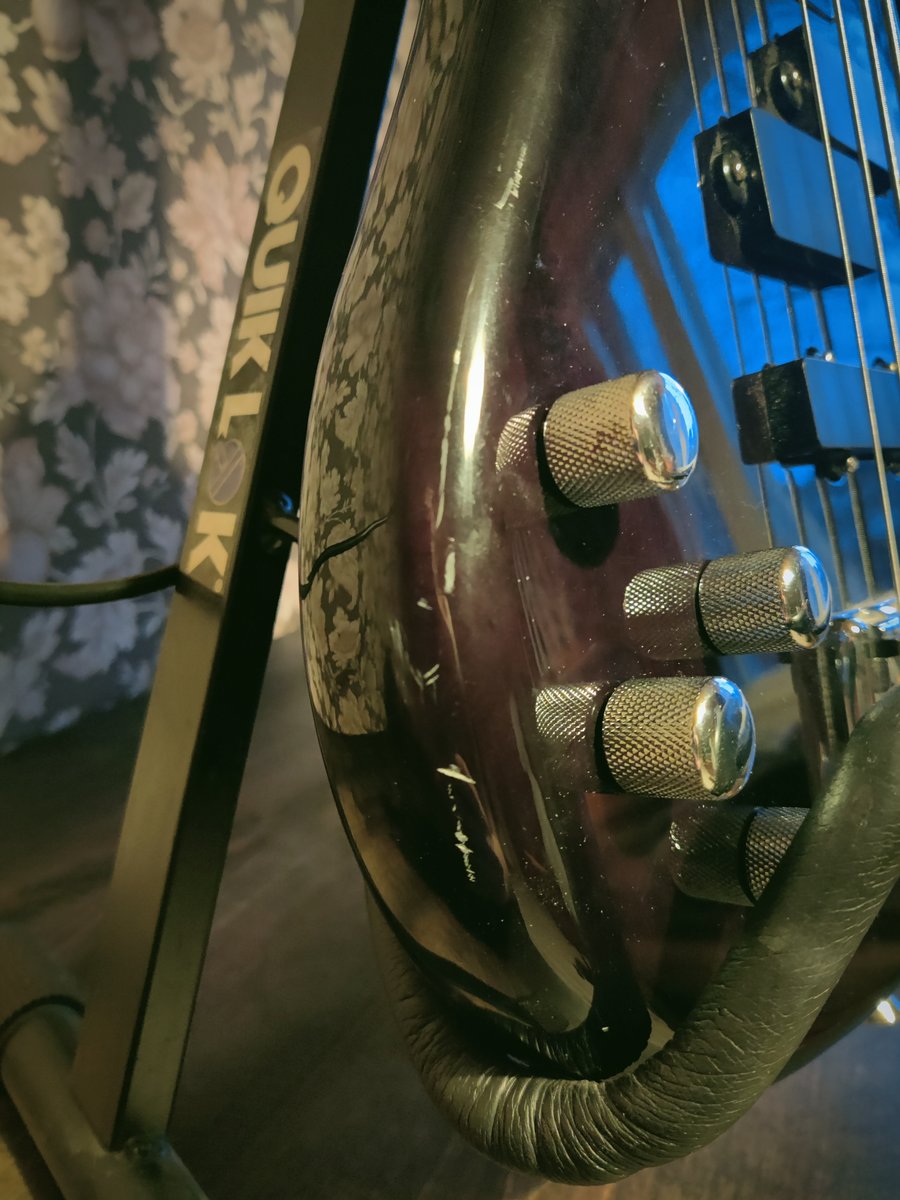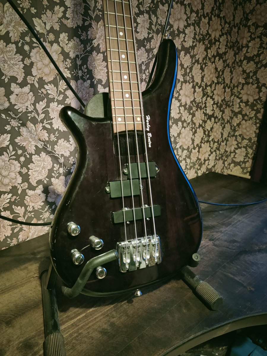 | Vähäisellä käytöllä ollut harley bentonin vasenkätisen basso. Toimii moitteetta, aktiivi mikit, eli tarvitsee 9v pariston toimiakseen. Potikoina volume sekä 3 alueinen eq (bass, mid, treble Sopii erinomaisesti aloittelevalle soittajalle. Mukana tulee thomanin kankainen kuljetuspussi. Käytönjälkiä löytyy soittimesta mutta soitettavaksihan nämä on tehty eikä vitriinissä säilytettäväksi. Hinta: 50 € | |
