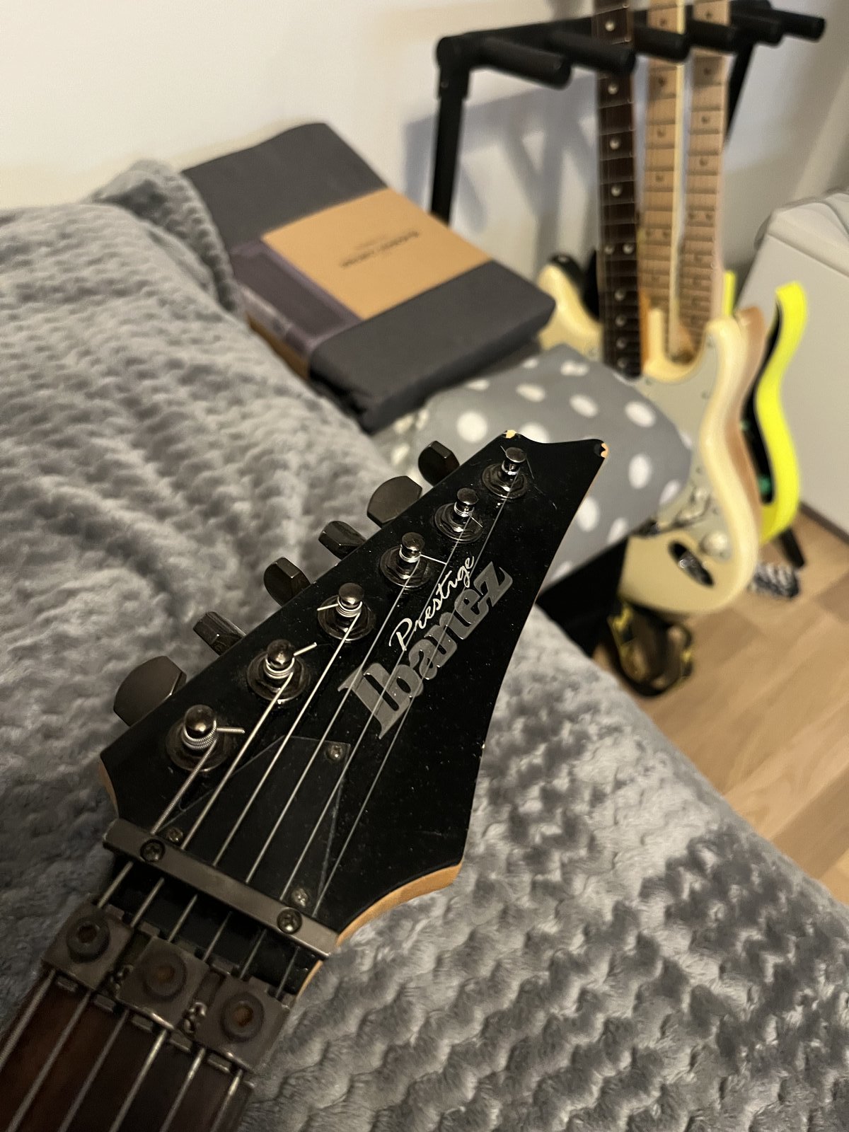 | Ibanezin laatuskeba Galaxy black värityksessä. Kosmeettista kulumaa on jonkin verran, mutta kitara soi hienosti ja kaikki toimii niin kuin pitää. Katon jos mä vielä löydän vibrakampia, tällä hetkellä hukassa. Postitus onnistuu ja sisältyy hintaan! Vaihdossa voisi mennä joku perinneheninen kitara ja playstation 5 kiinnostaa myös! Hinta: 700 € | |