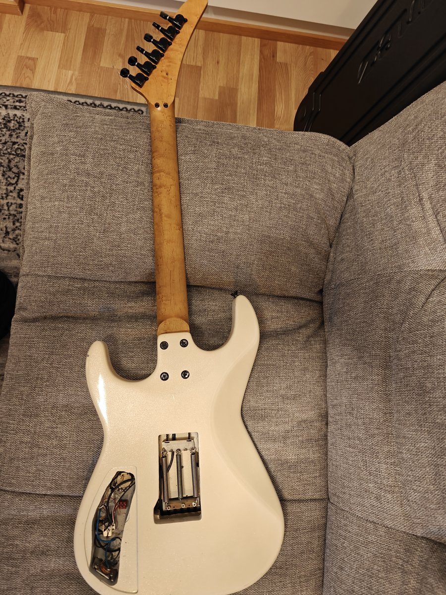 | Kasari kaula ,eli ei niin nyky ohut.. Mikit J-90C J-50B George Lynch pull-up potikka eli ei normi piuhotus, mutta sehä saa ku kolvaa. Body on leppää noname. Nouto Hinta: 370 € | |