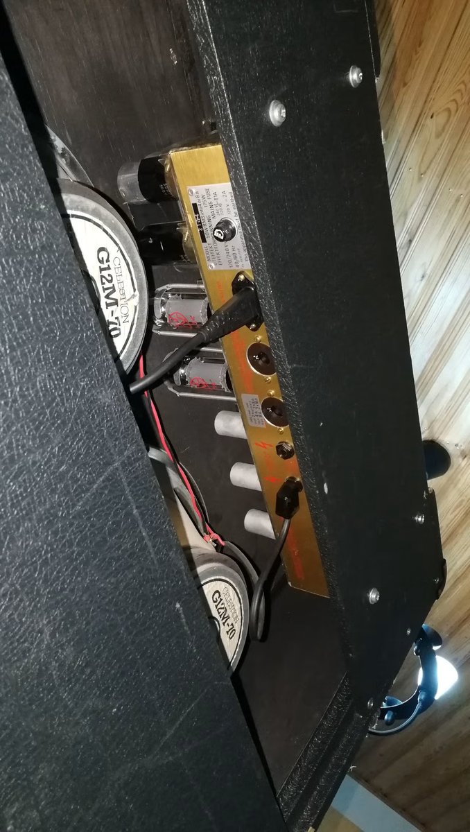 | Harvinainen 50W täysputki vuodelta 1983 Kaikki toimii. Hyvässä kunnossa. Celestion G12M-70 kartioilla ja EL34 pääteputkilla. Pelkkä vahvistin 1200 euroa, kuljetuslaatikon kanssa 1400 euroa. Kuljetuslaatikossa tilaa myös pedaalilaudalle/muille härpäkkeille. Myyn koska tarvitsen rahaa Etelä-Amerikan reissua varten. Kuljetus neuvoteltavissa. Hinta: 1200 € | |