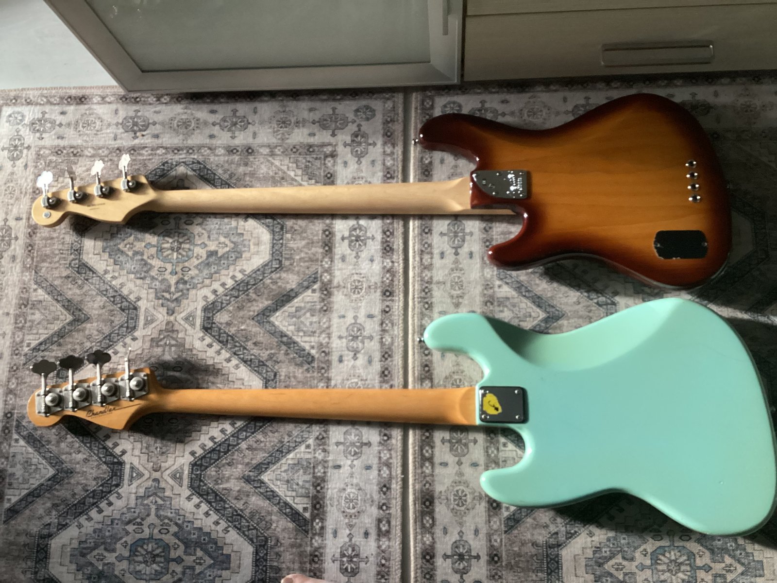| Voisin luopua ainakin toisesta Fender American Deluxe Jazz bass - Made in U.S.A 2006 - Aktiivi/Passiivi Kunto Mint 1350 eur Chandler Jazz bass - Made in U.S.A mid 90’s - Vintagehenkinen laatupeli - Stellartonen Tonesteller, Reverse virittimet Hiukan ajan tuomaa patinaa, ei mitään isompaa 850 eur Molemmissa kova laukku neuvoteltavissa mukaan. Vaihtoja voi tarjota, kuitenkin nelikielisiä, Mielellään passiivipelejä. Vaikka molemmat kerralla vaihdossa yhteen laatubassoon Hinta: 850 € | |