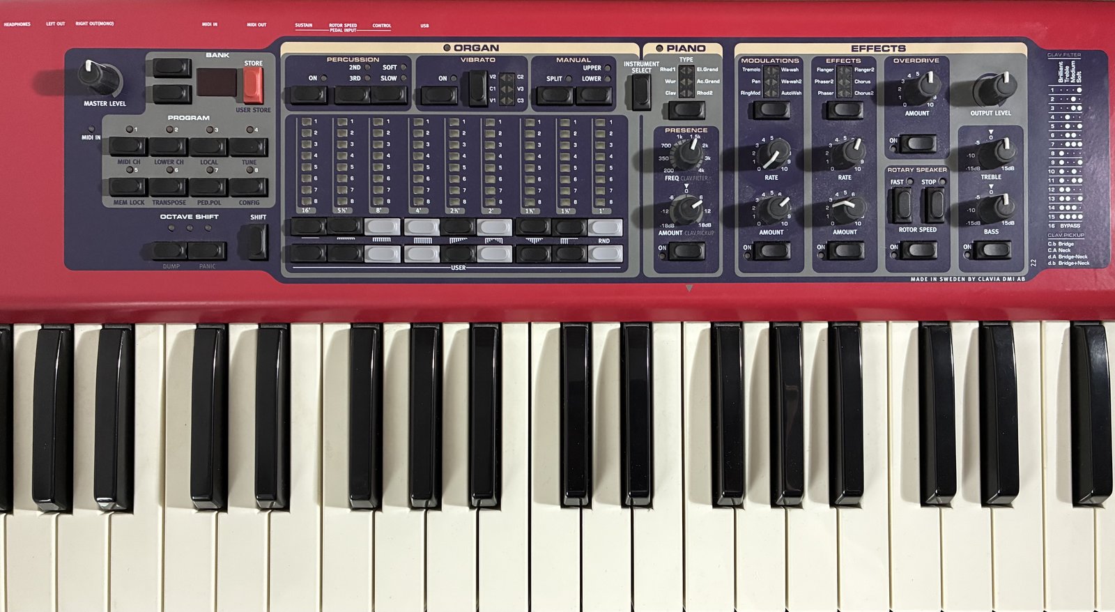 | 61-koskettimen (waterfall) Nord Electro 2, jossa erinomaiset sähköpiano- (Rhodes, Wurlitzer, Clav) ja hammond B3 -tyyliset urkusaundit. Akustinen piano-saundikin löytyy. Hyvä perussetti efektejä ja EQ jne. Kaikki oleelliset kontrollit kätevästi paneelissa omista napeista säädettävissä. Olen ostanut tämän itse uutena. Hyvässä kunnossa, kulkenut keikoilla ja treeneissä maltillisesti. Aina savuttomissa tiloissa. Pääasiassa ollut kotikäytössä ja säilytetty pölysuojattuna. Toiminnassa ei mitään huomautettavaa. Mukaan Clavian oma pehmustettu softbag. Tästä pätevää Nord-laatua edullisesti! (Kuvassa oleva teline ei kuulu pakettiin). Nouto Akaan Toijalasta (testaus onnistuu). Voi kulkeutua tarvittaessa omien menojen mukana lähiseuduille (Tampere-Hämeenlinna -akselilla) tai arkisin Helsingin keskustaan. Postitus ei valitettavasti onnistu. Yhteys aluksi pikaviestillä. Hinta: 550 € | |