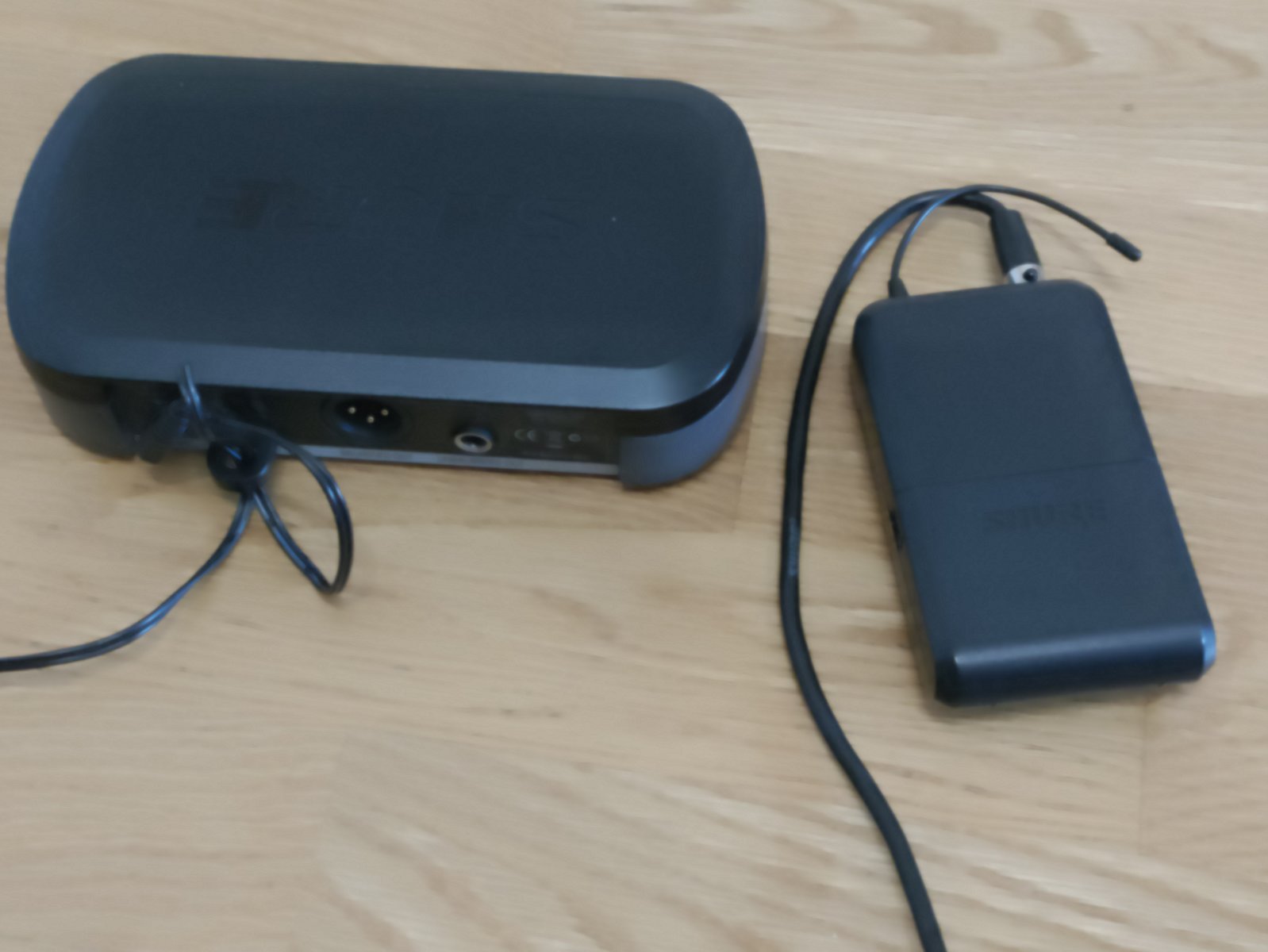 | Shure PG4 langaton vastaanotin ja Shure R10 langaton lähetin kitaralle. Toimii, mutta latenssia on ja muuttaa omaan makuun liikaa soundia. Hinta: 20 € | |