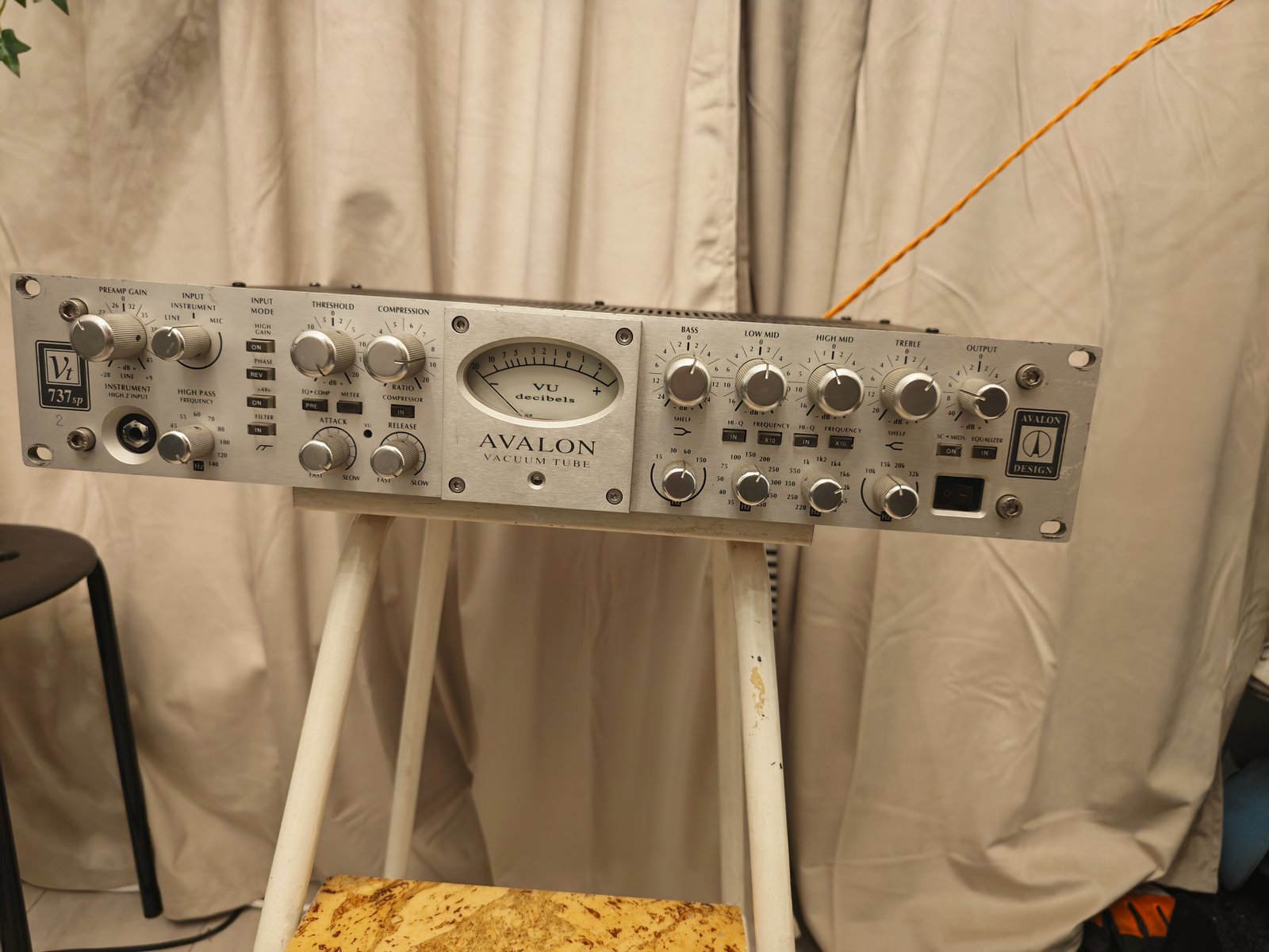 | Jo legendaksi muodostunut channel strip-etunen. Kaikki toimii, kuten pitääkin ja soundaa mahtavalta. Olisko 0.6x uuden hinnasta hyvä hinta? https://www.thomann.de/fi/avalon_vt … lEO9AzYmyz12PeMhROvtWkaAhOxEALw_wcB Mono mikrofonin esivahvistin / optokompressori / 4-kaistainen taajuuskorjain A-luokan erillinen elektroniikka Neljä kaksoistriodityhjiöputkea (Sovtek 6922) Hyökkäys/vapautus säädettävissä VU mittari +48 V phantom teho Vaihe käänteinen Muoto: 19" / 2 U Mitat (L × K × S): 482 × 89 × 305 mm Paino: 10 kg Liittimet: Mikrofonitulo: XLR balansoitu Linjatulo: XLR / 6,3 mm jakki tasapainotettu yhdistelmä DI-tulo: 6,3 mm jakki Linjalähtö: 6,3 mm jakki tasapainotettu Linkkiliitäntä: 6,3 mm jakki Hinta: 2600 € | |