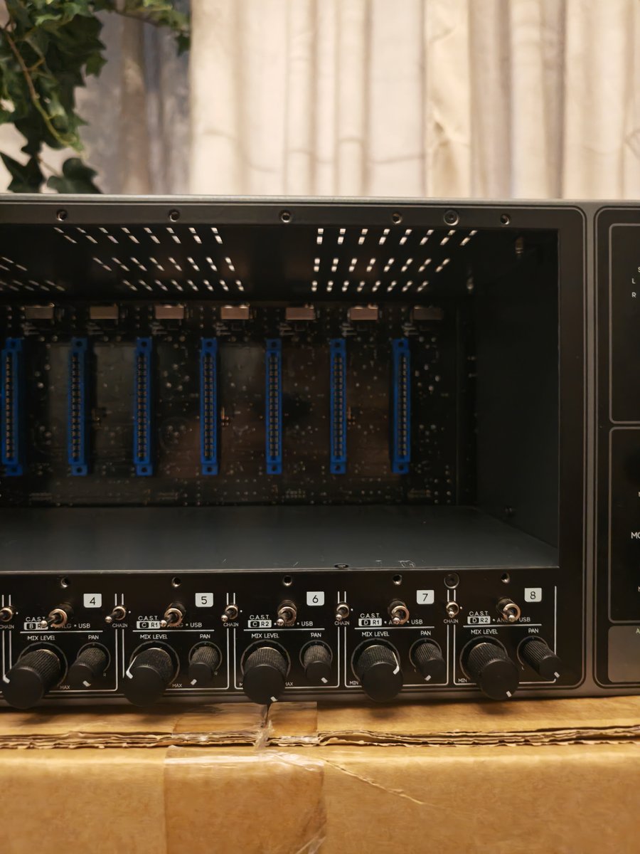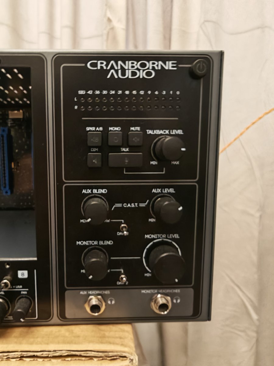 | Ensimmäiseltä omistajalta. Kaikki toimii kuten pitääkin ja myös alkuperäiset ojeistarvikkeet mukaan. 8-paikkainen räkki 500-sarjan moduuleille, joissa on integroitu USB-ääniliitäntä 8 I/O-kanavaa XLR-liitännöillä USB-ääniliitäntä, jossa 28 sisääntuloa / 30 lähtöä Näytön ohjain 8-kanavainen diskreetti analoginen summausmikseri Referenssi-AD/DA-muunnin Latenssiton monitorimikseri, jossa äänenvoimakkuuden ja panoroinnin säätimet kanavaa kohden 2 monitorilähtöä: Kaiutin A-lähdöt ja Kaiutin B-lähdöt Monosummaus, mykistys, himmennys ja talkback-toiminto 28-segmenttinen LED-mittaus lisäinsertti kanavaa kohden yksilöllinen signaalin reititys Ohituskytkin kanavaa kohden CAST-järjestelmä neljän balansoidun analogisen äänikanavan siirtoon yhden Cat5-linjan kautta Elementin dynamiikka-alue: 121 dB (A) - AES17, 20 Hz 20 kHz Taajuusvaste: -1 dB, 2,2 Hz - > 80 kHz THD+N: <0,00032 % (-110 dB) @ 4 dB FS, 20 Hz 40 kHz, 1 kHz (A-painotettu) Mitat (L x K x S): 481 x 185 x 219 mm Paino: 7 kg Hinta: 1550 € | |