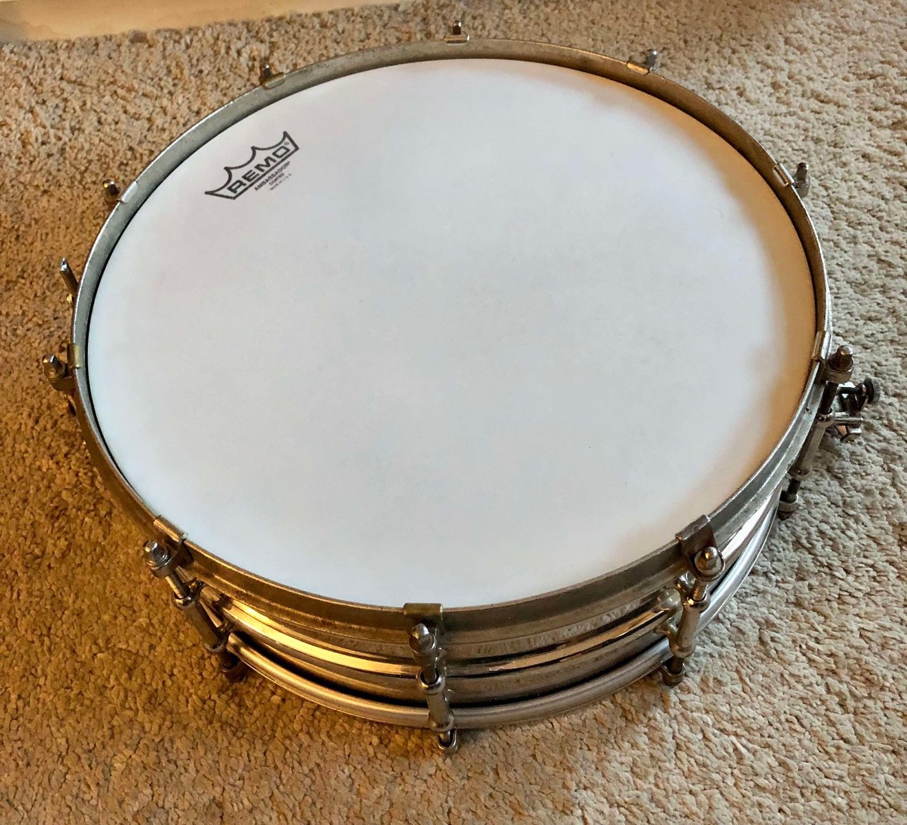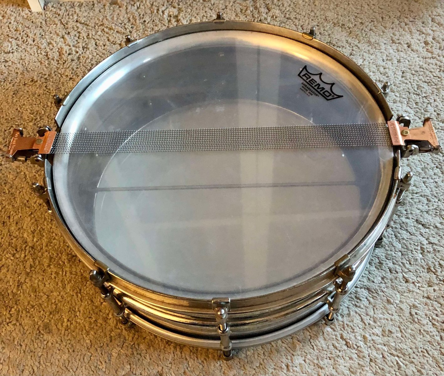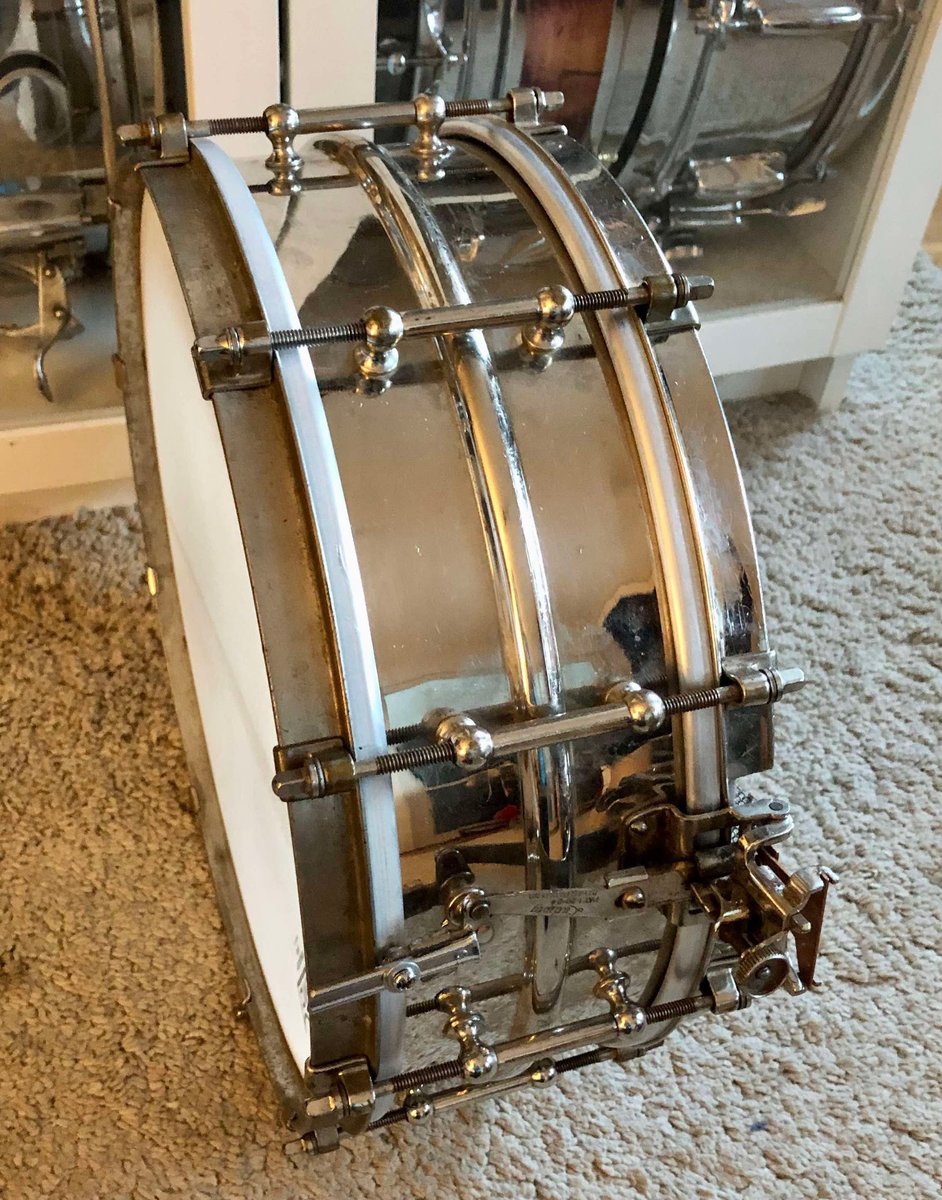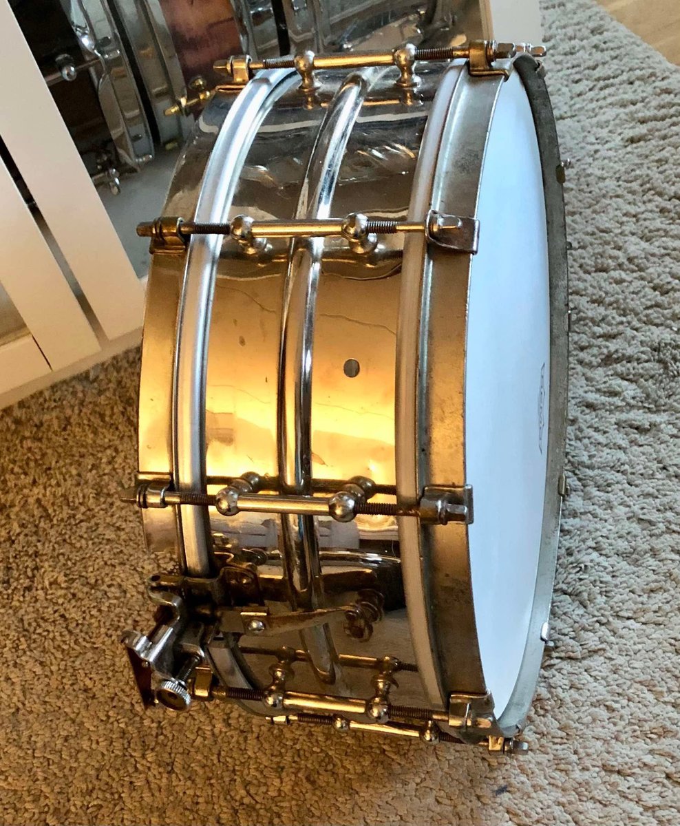 | Harvinaista herkkua, kohta satavuotias super ludwig 14x5 usa. Nickel over brass. 10 luginen, brass hoops. Ei vikoja. Refee https://ebay.us/m/erK9Jt Hinta: 1200 € | |