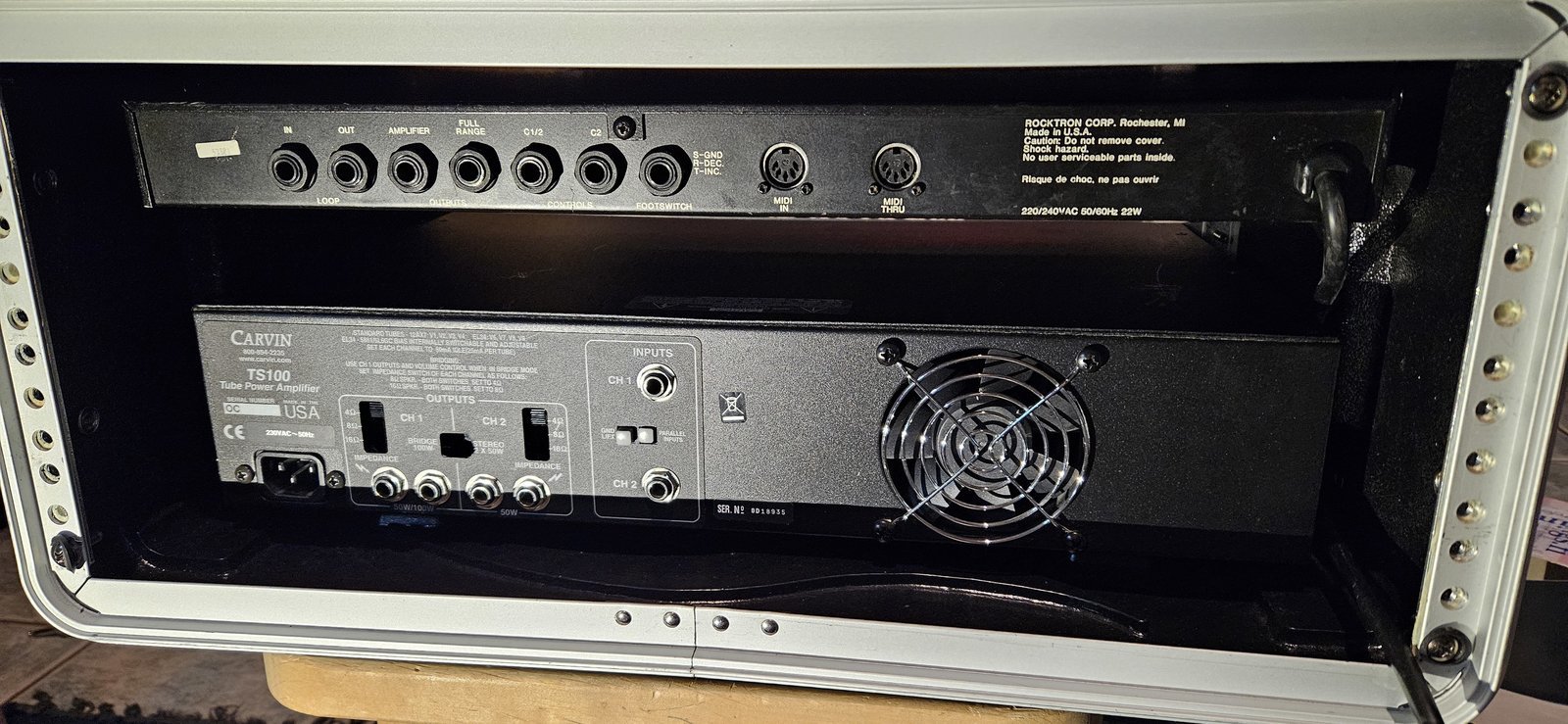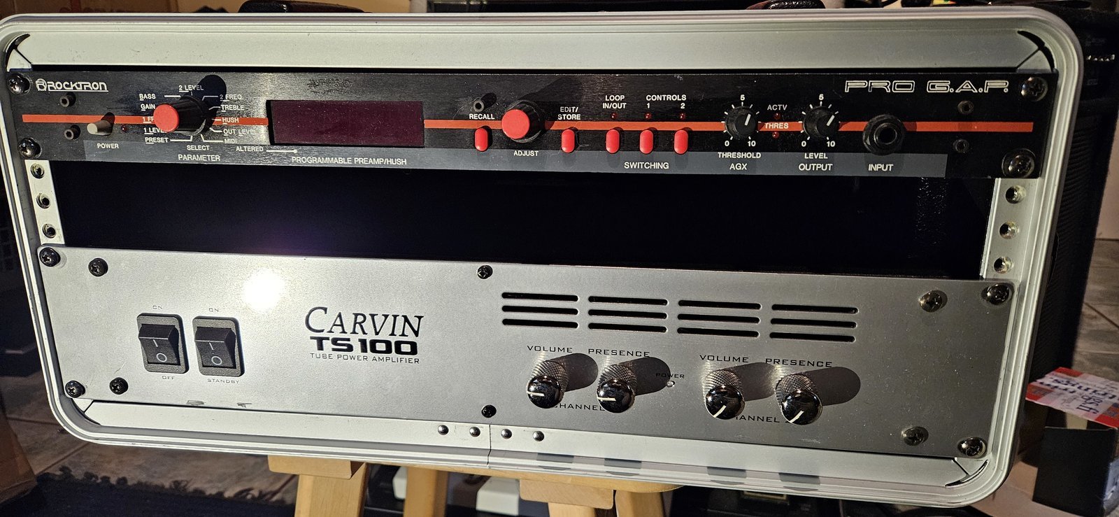 | Moro! Räkkileikit päätöksessä, ylimääräiseksi jääneet viipaleet eteenpäin... Vain pääte enää jäljellä. Putket 6L6, myös mahdollista käyttää ainakin EL34 putkia. Putkien iästä ei ole tietoa eikä ollut edelliselläkään omistajalla, mutta soundi on terve. 2x50 W stereo, sillattavissa 100 W mono. Kummallekin kanavalle etupaneelissa volume- ja presencesäätimet. Ehjä ja siisti. Voin allekirjoittaa netistäkin löytyviä arvioita siitä, että tämä on soundiltaan melko läpinäkyvä, ts. ei väritä soundia kovin vahvasti. Siten sopii hyvin vaikka mallintavankin perään, mutta tuo kuitenkin sitä putken lämpöä ja tuntumaa mukaan soundiin. Sijainti Länsi-Pakila Helsingissä, lähettämisestäkin voidaan keskustella. Kuvan 4U räkki on myyty, kuten myös kuvassa näkyvä Rocktronin etuaste. Vaihdossa kitarakamaa, esim. Laney 1x12" -kaappi. Hinta: 350 € | |