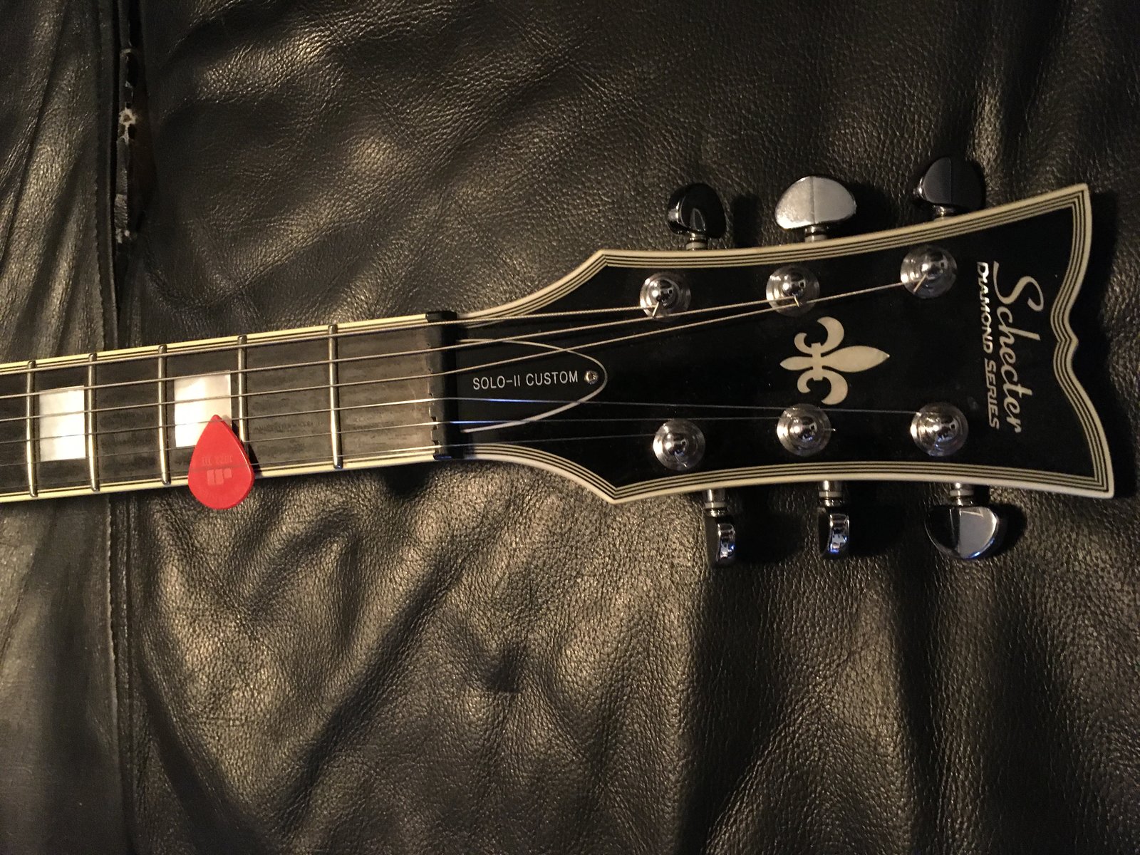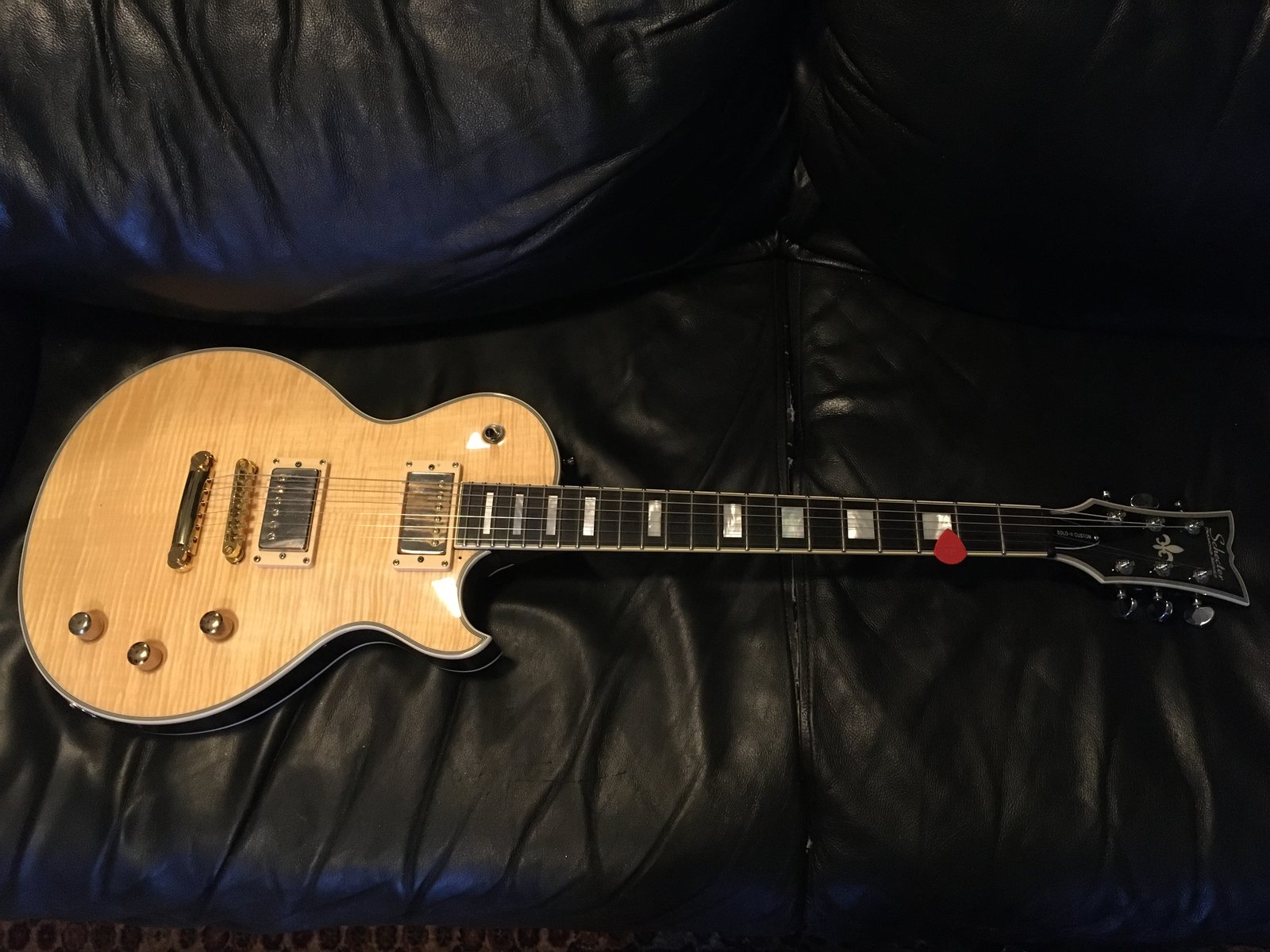 | Tarjolle tyylikäs Schecterin Korean tehtaan näkemys Les Paulista. Laatuspeksit, mm. eebenotelauta ja Earvanan yläsatula. Pimpattu vielä kultaisilla osilla, mm. Gotohin TOM-raudat ja Seymour Duncanin mikit 80-90-luvulta (ks. kuva): - tallassa Jazz Model Bridge JMBJ - kaulassa Alnico II Pro Neck APH1NL Mainio kunto, ei suurempaa käytön jälkeä, bodyssa lähinnä pientä vyösolki-ihottumaa ja nauhoissa vain juuri huomattavaa kulumaa paikoin. Kitarassa oli Fishman-mikit ja näitä varten takapleksissä reikä usb-laturia varten joka nyt teipattu. Lähetys onnistuu. Vaihdossa saattaa myös onnata esim. jokin kitaranuppi, Kurzweilin uudempi syntikka (PC4, Forte yms) tai miksei jokin kiinnostava kitarakin. Hinta: 850 € | |