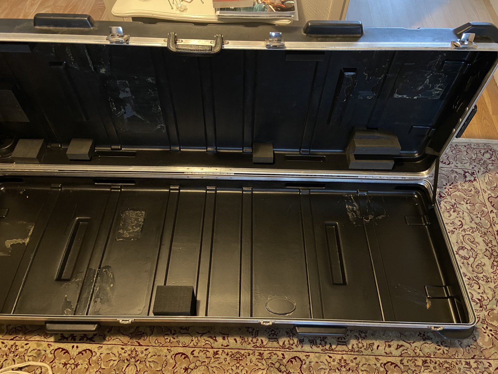 | Myydään kyseinen kova pianokotelo 88-koskettimiselle kiipparille. Mukaan pehmustepalat, jolla koteloa saa muokattua omalle pianolle sopivaksi. Toimii hyvin ja vain normaalia kulutusjälkeä pinnoilla. Sisämitat n. 150cm x 47cm x 17cm Ensisijaisesti nouto Turun keskustasta, mutta lisämaksua vastaan voin tuoda myös Helsinkiin ja satunnaisesti Tampereelle. Yhteydenotot soittamalla, tekstiviestitse tai sähköpostitse. Hinta: 320 € | |
