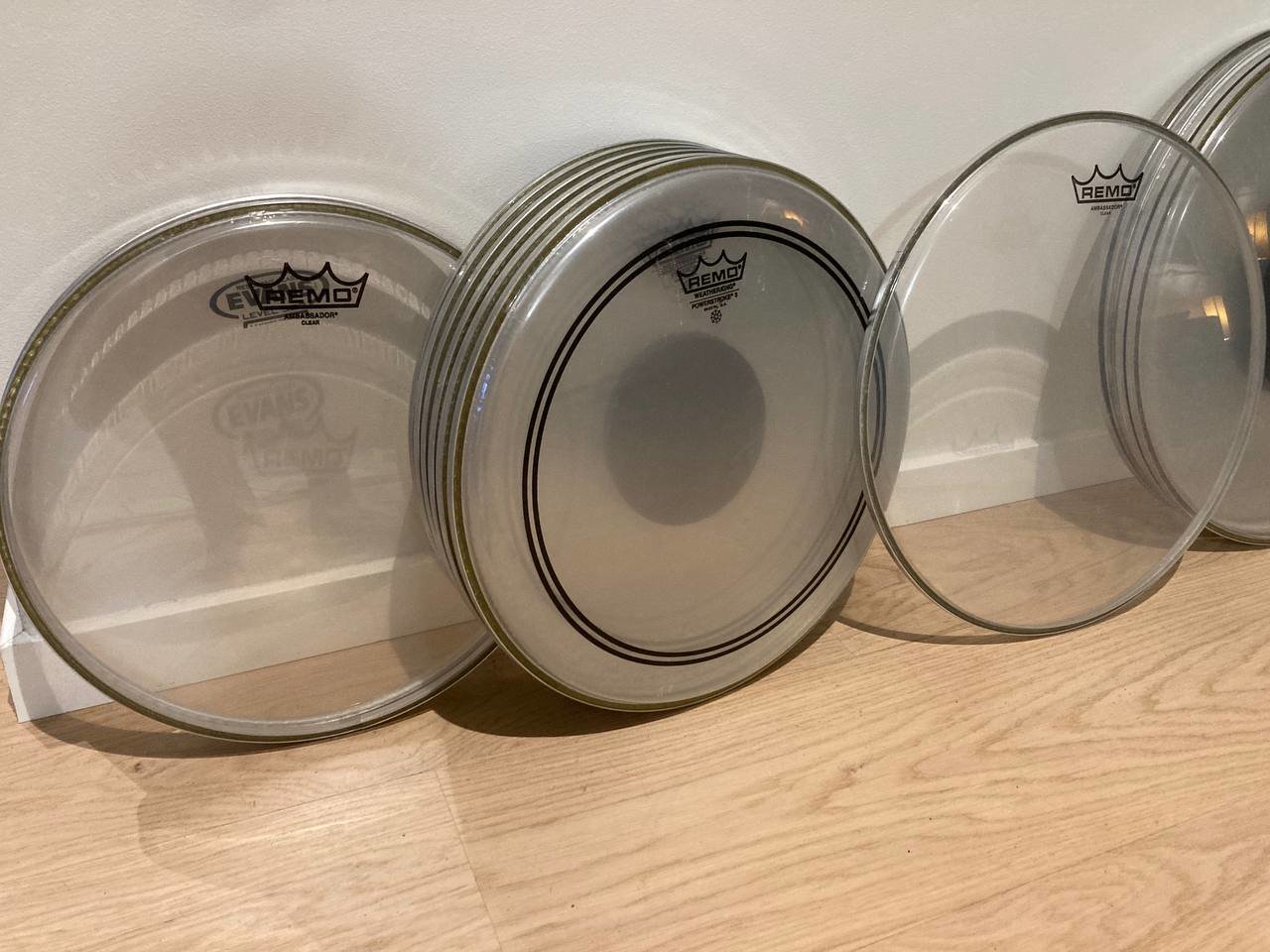 | Nyt halvalla uusia ja lähes virheettömiä kalvoja.  Kunto: Uusi / Virheetön (Paketti Thomannin hinta uutena: 624¤) Pakettiin sisältyy: 12” Remo Ambassador clear / Uusi Evans Resonant Glass Clear / Uusi 13” Remo Pinstripe Clear / Kuin uusi Remo Controlled Sound Clear / Kuin uusi Remo Controlled Sound Clear / Uusi Remo Ambassador Clear / Uusi Remo Powerstroke 3 Clear / Kuin uusi Remo Emperor Clear / Kuin uusi 14” Remo Ambassador Clear / Uusi 16” Remo Ambassador Clear / Kuin uusi Remo Controlled Sound Clear 2kpl / Kuin uusi Evans Genera G1 Clear / Uusi 20” Remo Powerstroke 3 Smooth White / Kuin uusi 22” Logoless (Uskon että Remo Powerstroke 3 Clear made for Pearl) + Remo Falam Slam / Kuin uusi Evans Emad kahdella demppaus renkaalla + remo falam slam / Kuin uusi Remo Pinstripe Clear / Kuin uusi Voin lähettää lisäkuvia kalvojen kunnosta jos paketti kiinnostaa. Hinta: 150 €  | |