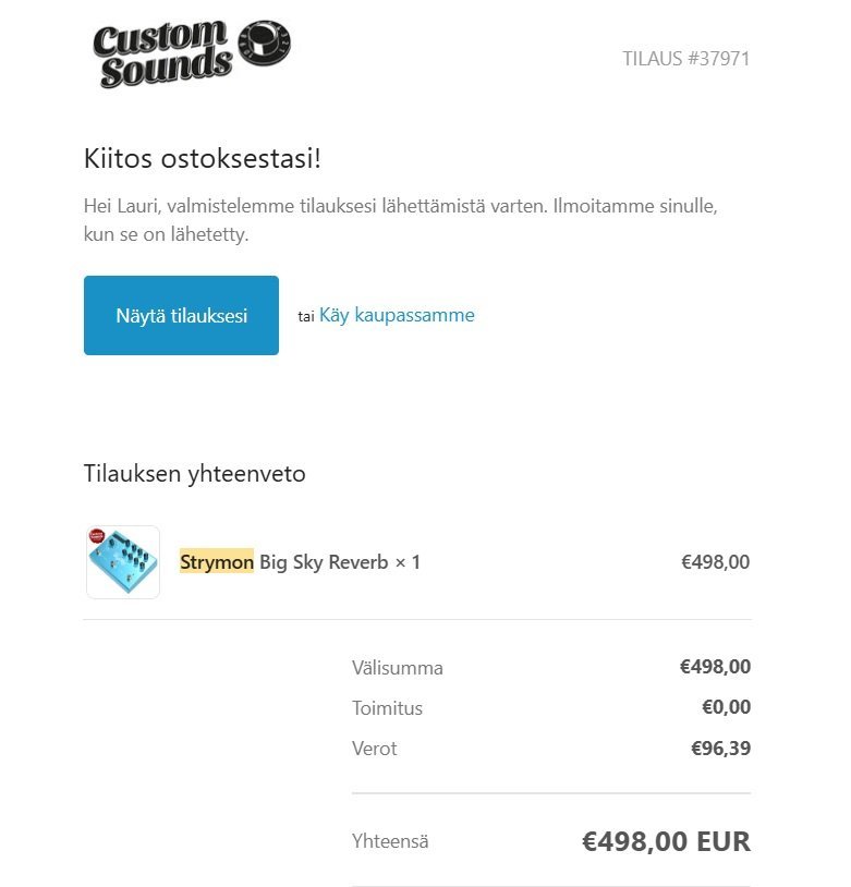 | Myydään: Strymon Big Sky Reverb kaikupedaali (Kuin uusi) + virtalähde. | |